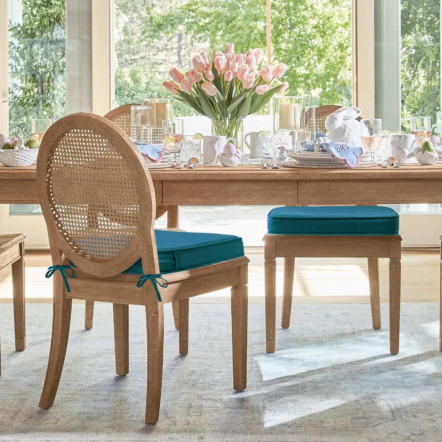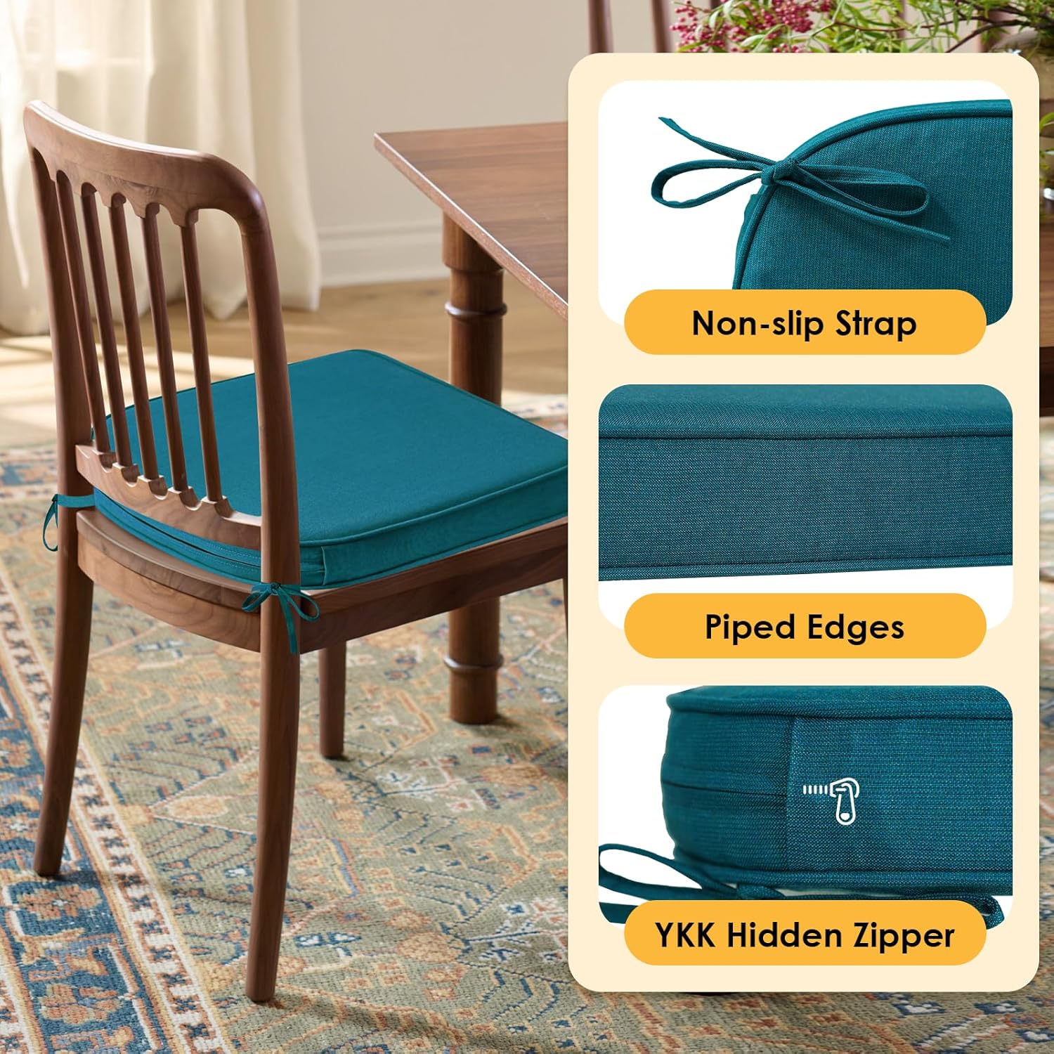 Outdoor Sunbrella Round Corner Seat Cushion, 17"x16"x2", Set of 4, Non Slip Seat Cushion Pads with Removable Cover for Patio Furniture, Garden Yard Lawn, Spectrum Peacock