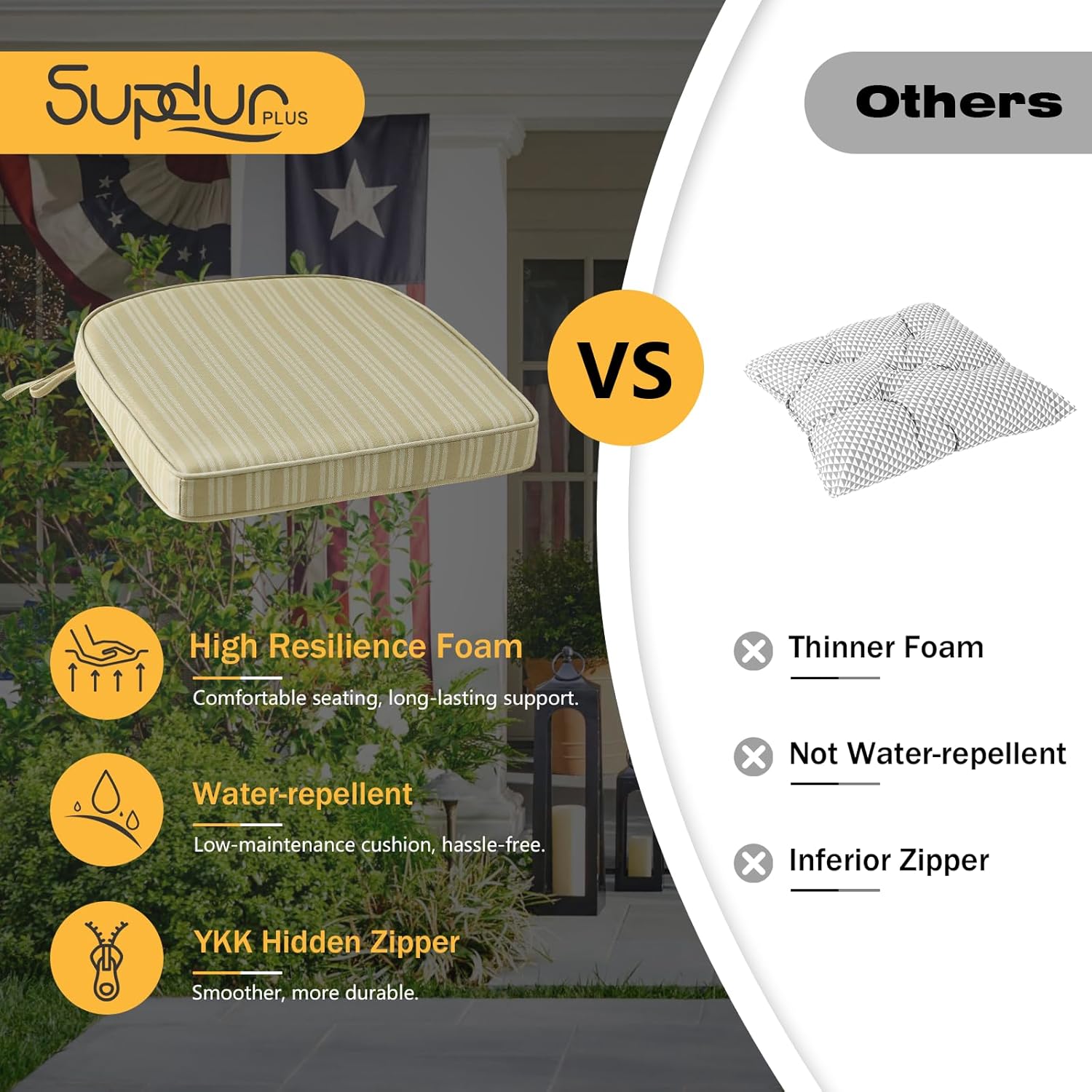 - Non-slip Ties & Piped edge: There are 2 straps on each side of the outdoor furniture cushions to keep stable and feature piped edges for a polished look and superior durability.