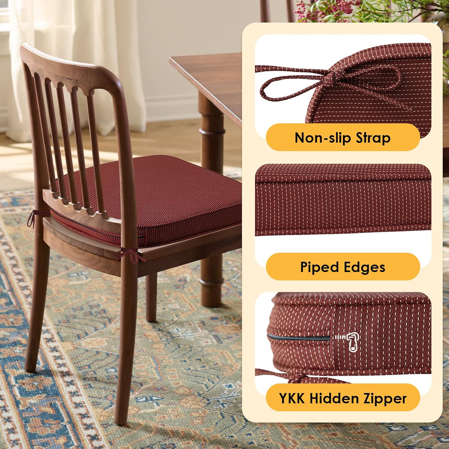 - Chair Cushion Set of 4: Each pack includes 4 Chair cushions measuring 17"W x 16"D x 2"T. Measure the seating area of your furniture to ensure their size is right.