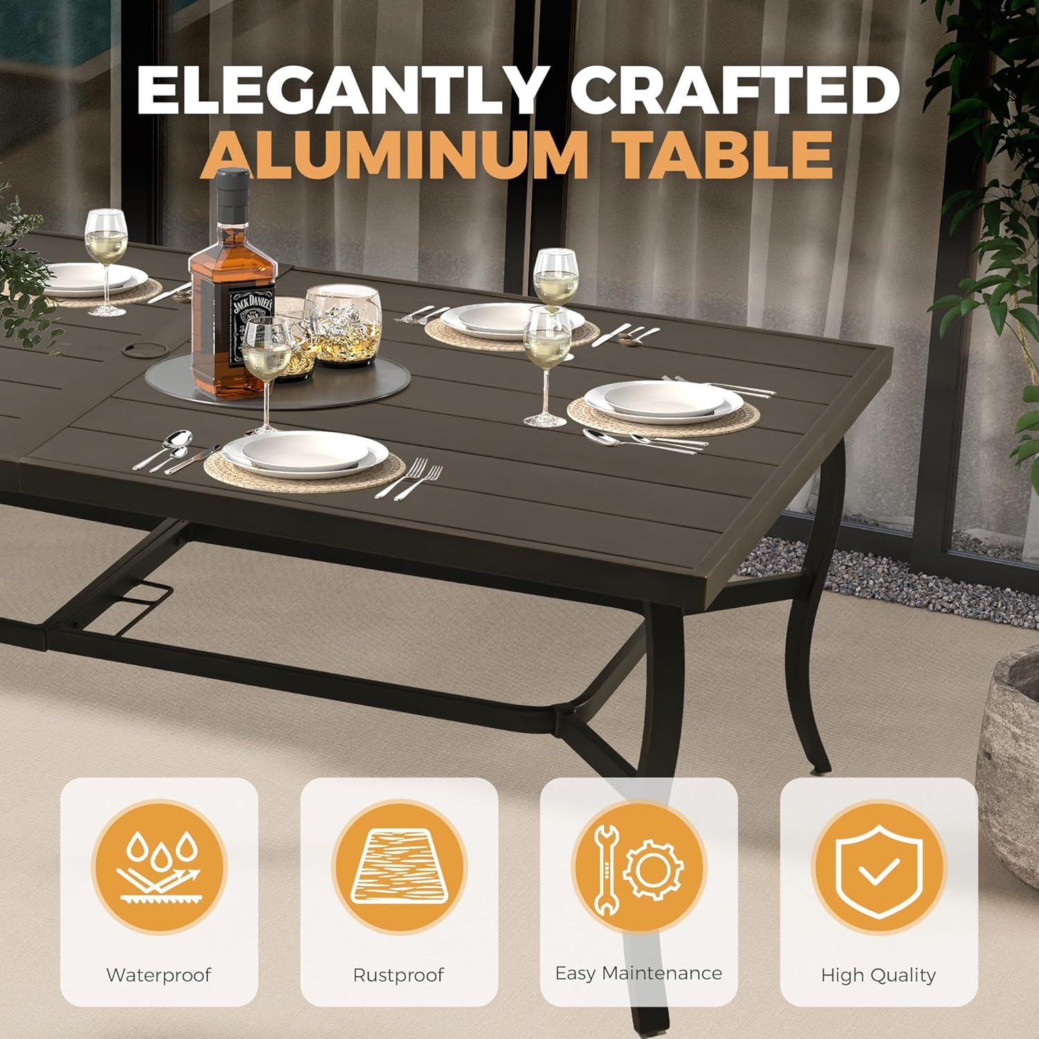 - 【Aluminum Frame】The lightweight aluminum frame of the dining set ensures that our outdoor dining table is easy to move yet will not rust. Aluminum is sturdy and will last a long time in your yard or on your deck, patio, or porch.