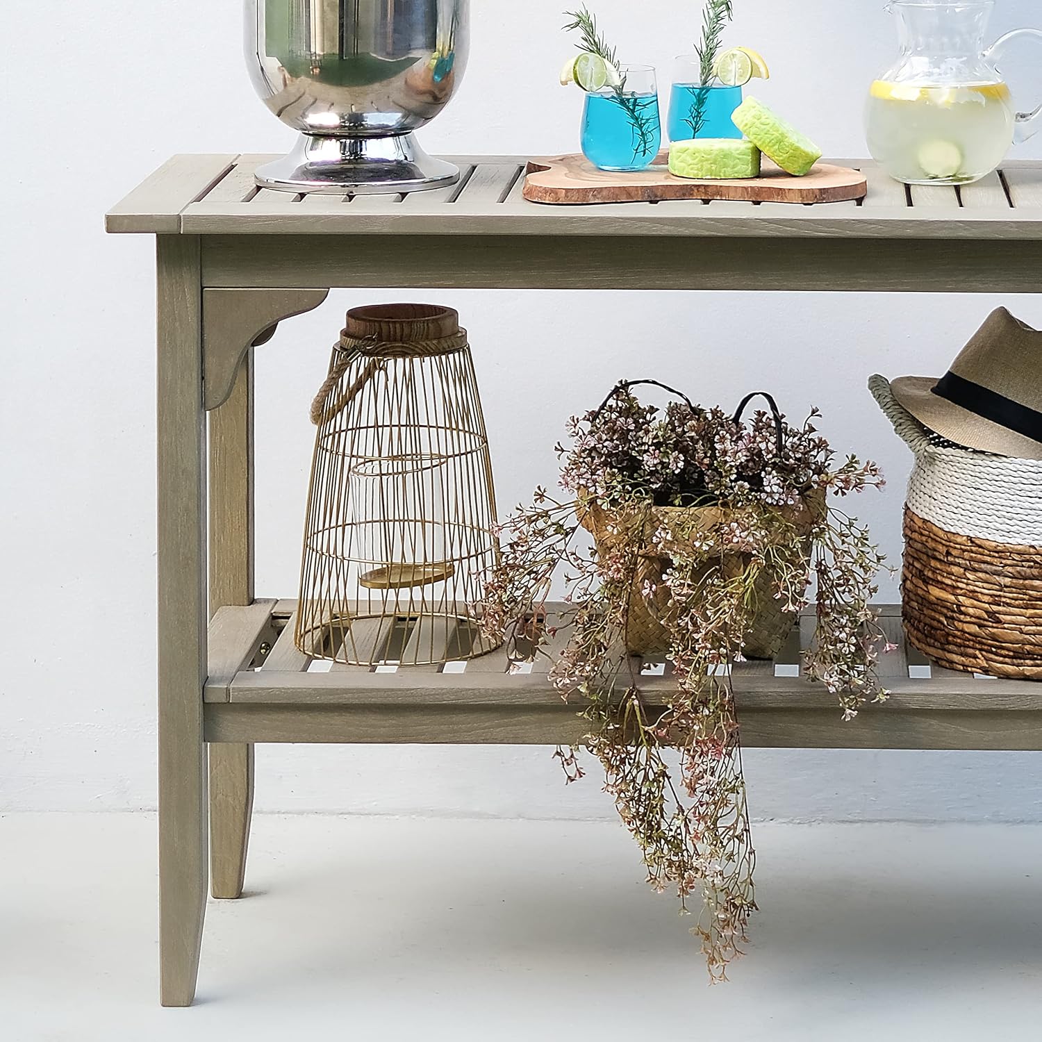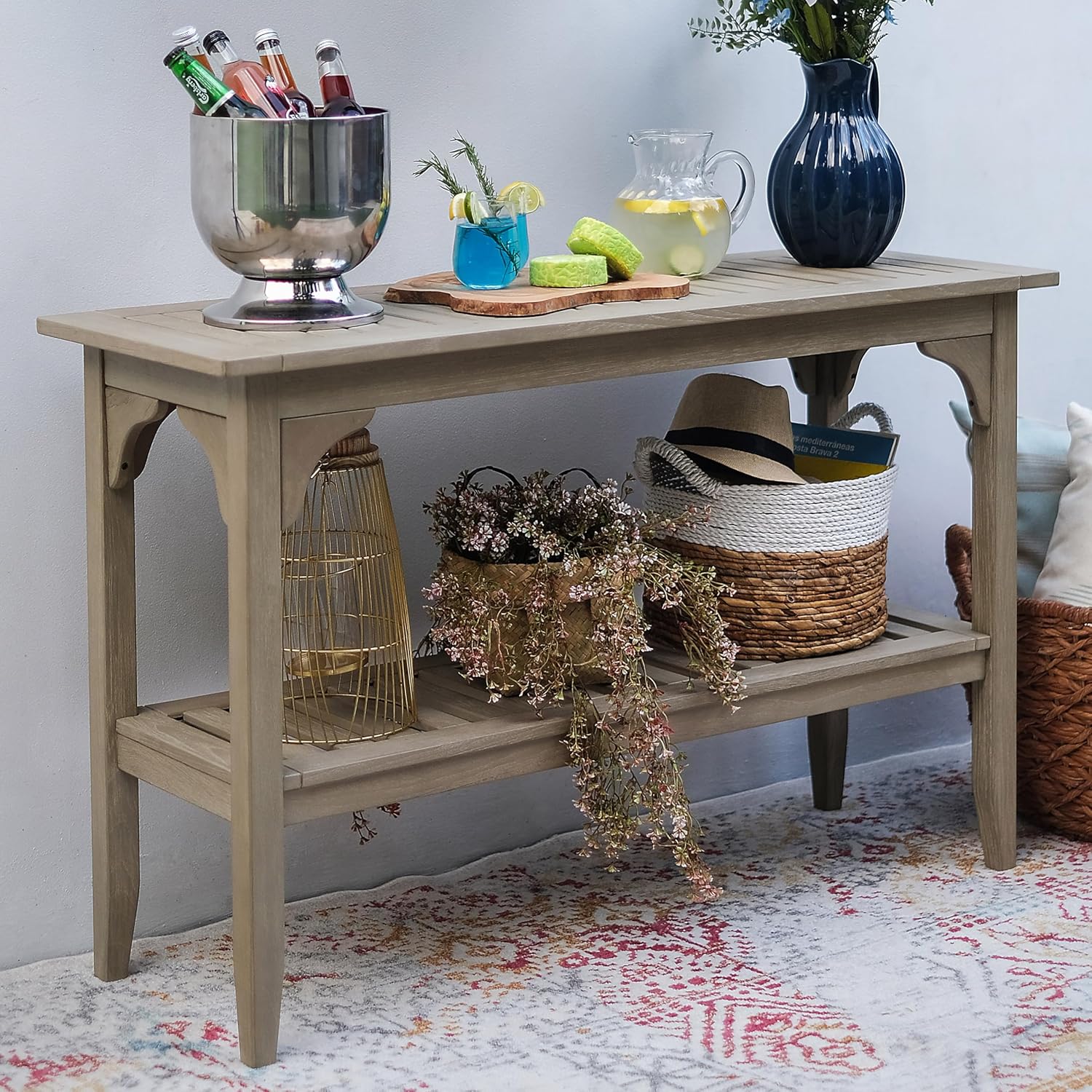 - Weather-Resistant: Made from high-quality teak wood and treated with an environmentally friendly, weather-resistant finish, this outdoor console table is designed to withstand all types of weather conditions, ensuring it remains durable and reliable for all seasons. Its resistance to wear and tear makes it a great investment for long-term use.