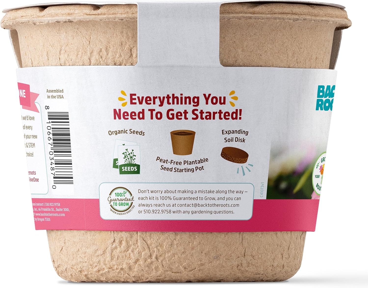 Back to the Roots Organic Zinnia Flower Grow Kit with Plantable Starting Pot Soil and Seeds