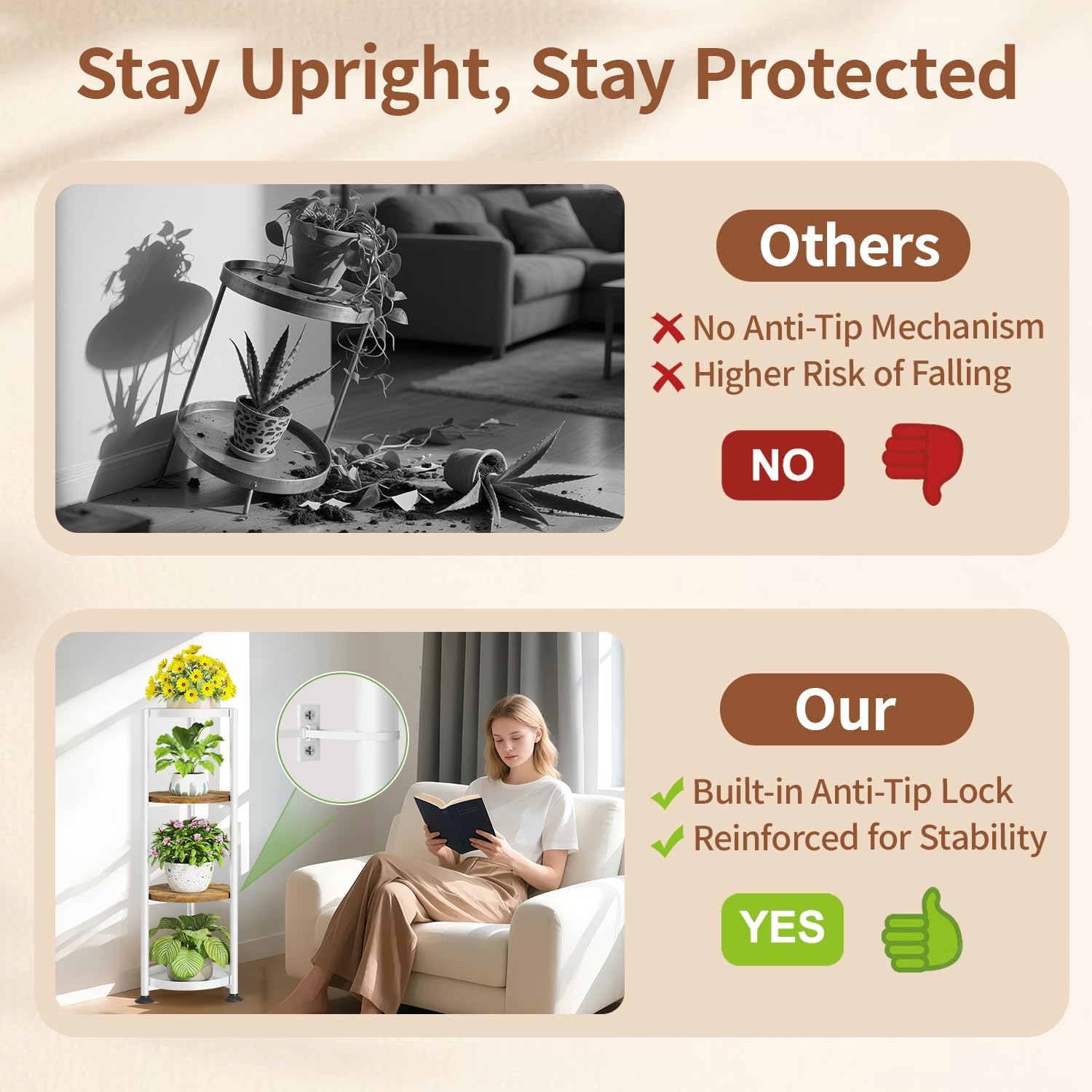 - 【Space-Saving Vertical Design】Our vertical floor plant stand is a small-space essential—sleek and slim, it fits perfectly into any corner, whether in your cozy living room or by a narrow space. No need to sacrifice style for space—this plant stand large delivers both!