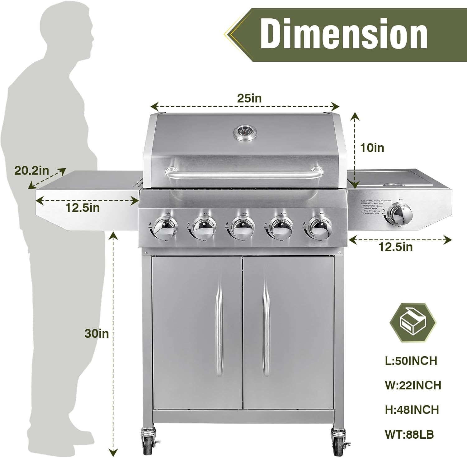 - 🔥 【All-Weather Performance】 Rain or shine, enjoy year-round grilling. Weather-resistant design withstands high heat and humidity. Bonus storage cabinet holds propane tanks, tools, and accessories.