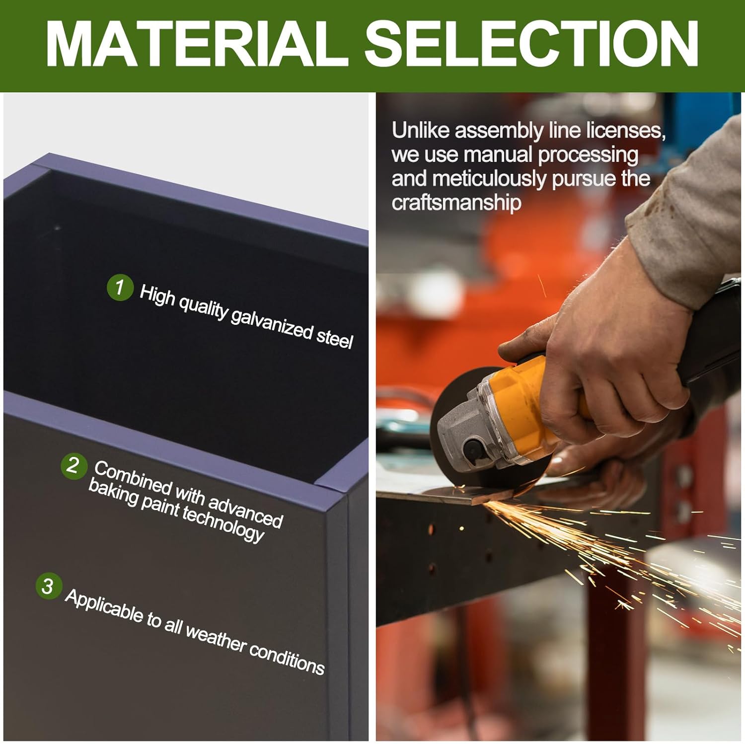 - 【ROBUST METAL CONSTRUCTION】Crafted from sturdy galvanized steel, this spacious planter boasts exceptional durability, ensuring it withstands outdoor elements without rusting or fading. Its weather-resistant design makes it suitable for year-round use in temperatures ranging from freezing cold to scorching heat, ideal for enhancing both indoor and outdoor settings.