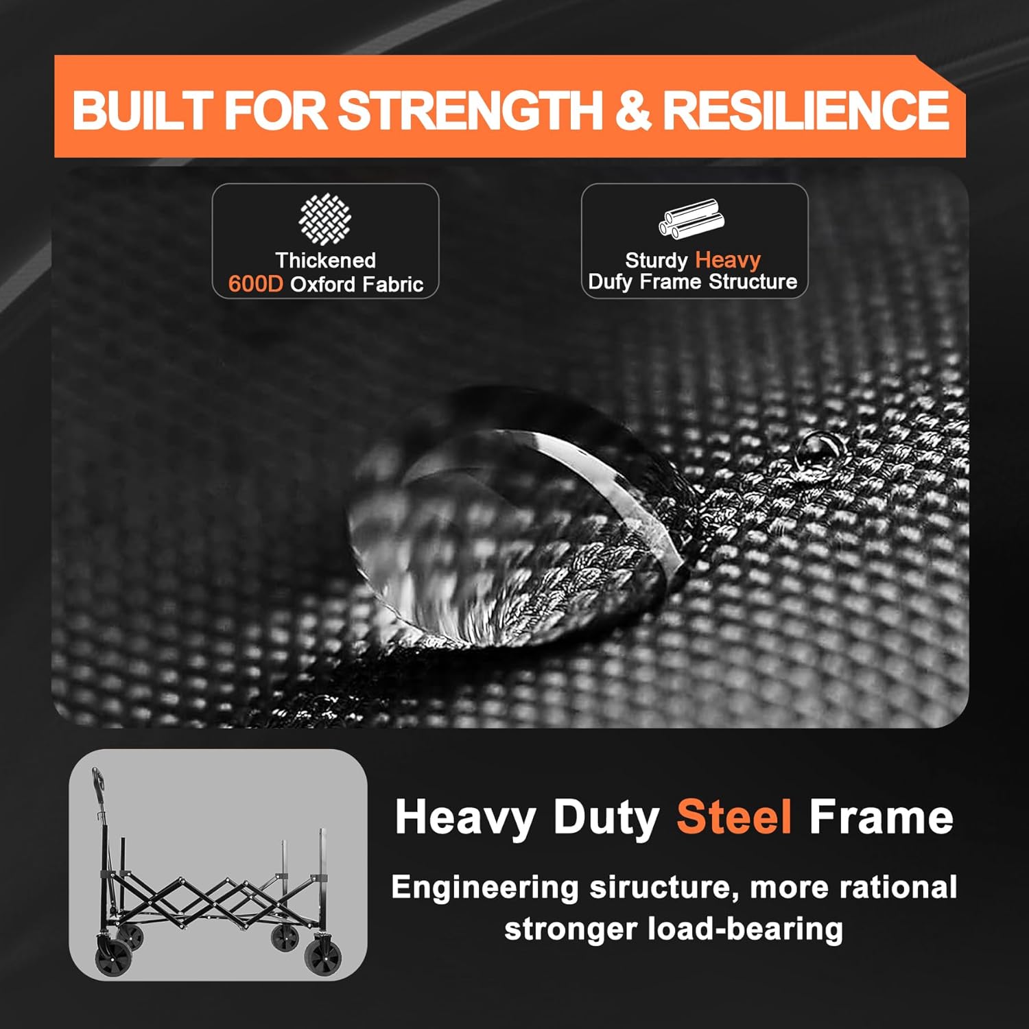 - EXTRA LARGE CAPACITY - DURABLE COLLAPSIBLE WAGON: The collapsible wagon has an expansion size of 57.56"x 17.72"x 37.8" (L*W*H) and load up to 350LBS, which can carry all the goods your family needs for outdoor camping