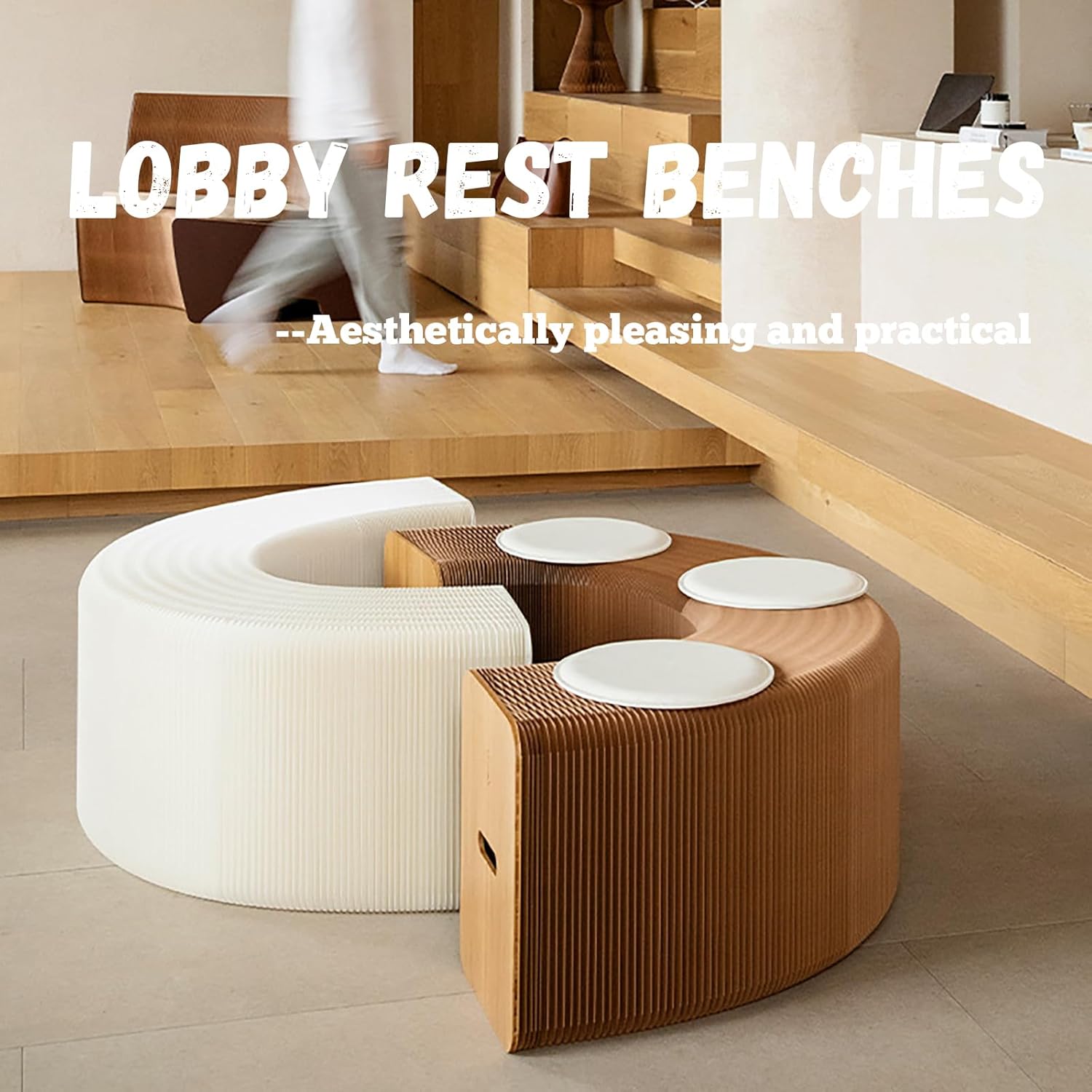 Foldable Kraft Paper Stool, Honeycomb Accordion Folding Bench, Collapsible Paper Stool for Small Spaces, Portable Footrest and Side Table for Living Room and Office,White-44×31×300cm