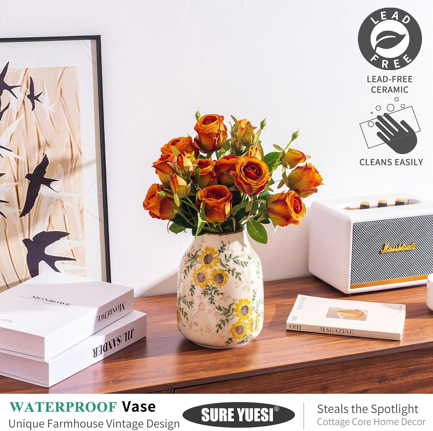 - MULTI-SCENE DECOR VERSATILITY: Elevate fireplace mantle decorations, kitchen counter decor, or table centerpieces with this 7.8-inch ceramic vase. Holds fresh flowers, dried stems, or standalone as sunflower decor in living rooms, offices, or Tuscan-style interiors.