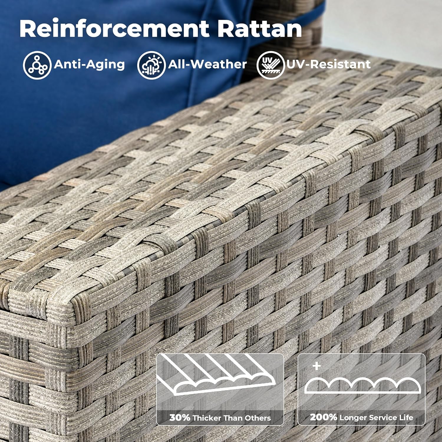 - All-weather Wicker Rattan: Our outdoor sofa sets have very durable wicker rattan for all-weather use and a natural texture with good coloring. The high-quality patio seating made of powder coated steel frame ensures good strength and stability.