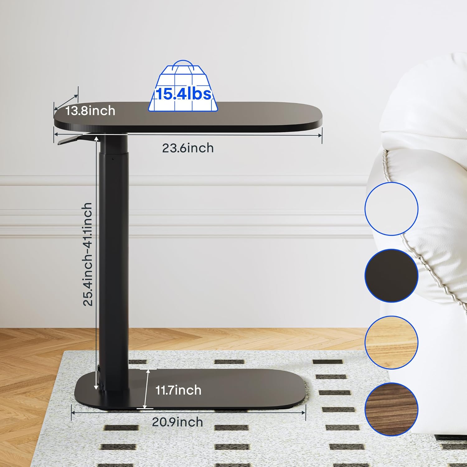 - Versatile Space-Saving Solution,Maximize functionality: Use as a wheelchair-accessible desk, recliner /sofa workstation, craft table, or bed tray for elderly care. The C-shaped design hugs furniture tightly while offering a spacious 23.6"×13.8" surface, blending discreetly as a modern end table or overbed workstation.