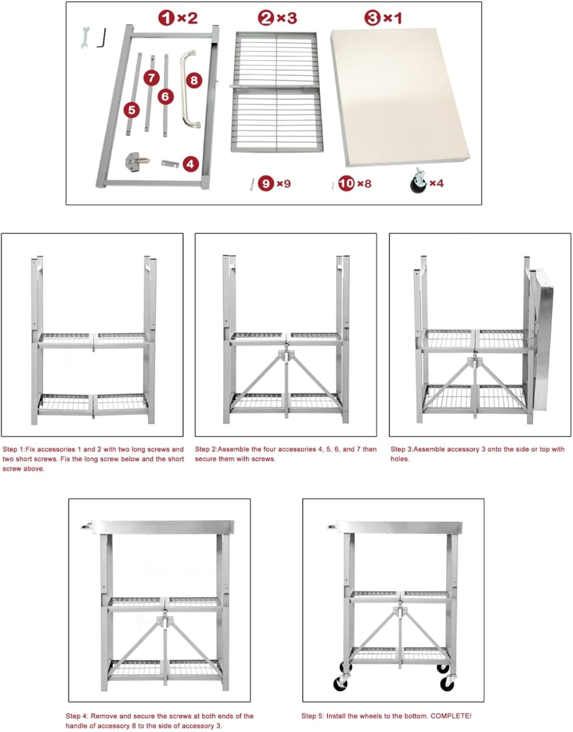 - 【Effortless Assembly and Foldable Design】: Our foldable grill cart is designed for simplicity, this steel table can be easily assembled and instantly put to use for parties or cooking sessions. The innovative clamp design allows you to unfold and secure the cart effortlessly. When not in use, fold it back to a thin size for easy storage, ensuring it remains compact and space-saving.