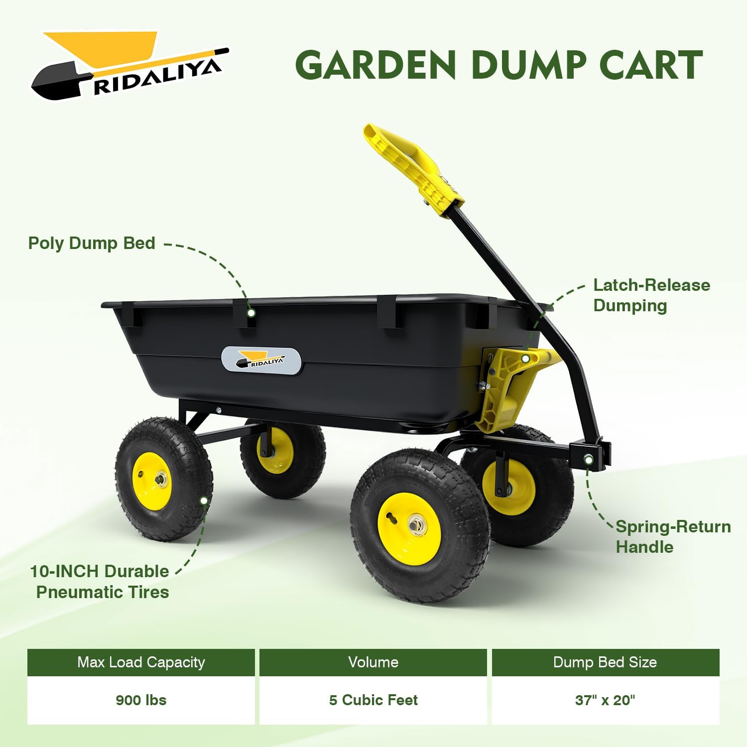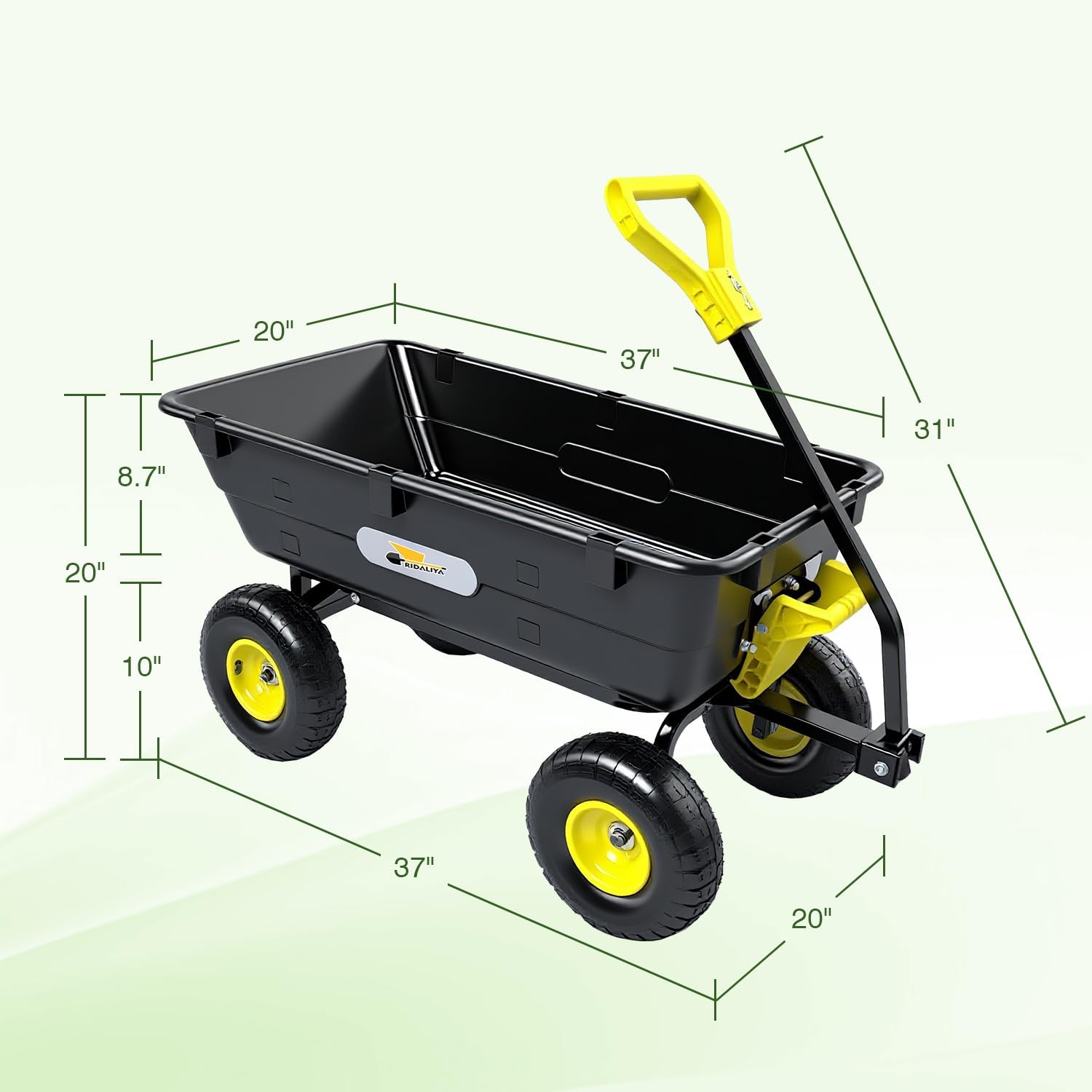 Garden Dump Cart, Heavy-Duty Utility Wagon with 900 lb Capacity, 5 Cu Ft Bed, 10" Pneumatic Tires, 180° Pivot Steering for Yard, Lawn, and Beach Use