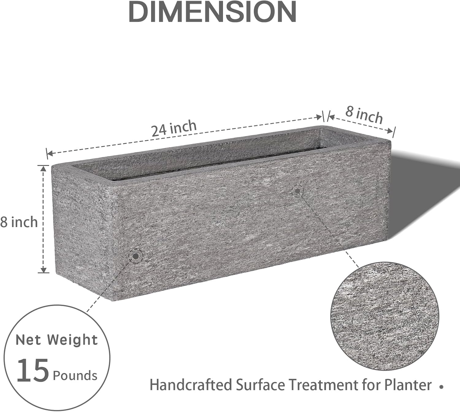 24 Inch Rectangular Concrete Planter,Durable All-Weather Use with Drainage Holes,Large Rectangular Planter for Outdoor Indoor Plants
