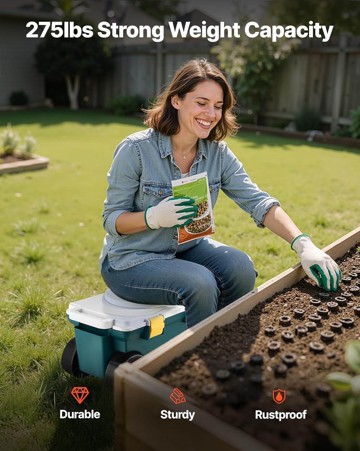 - Durable Construction: Made with a strong plastic frame, this garden bench can handle up to 275 lbs, offering excellent durability. It's ideal for gardening and also suitable for other indoor and outdoor tasks like planting, sowing, painting, cleaning, and even car repairs.