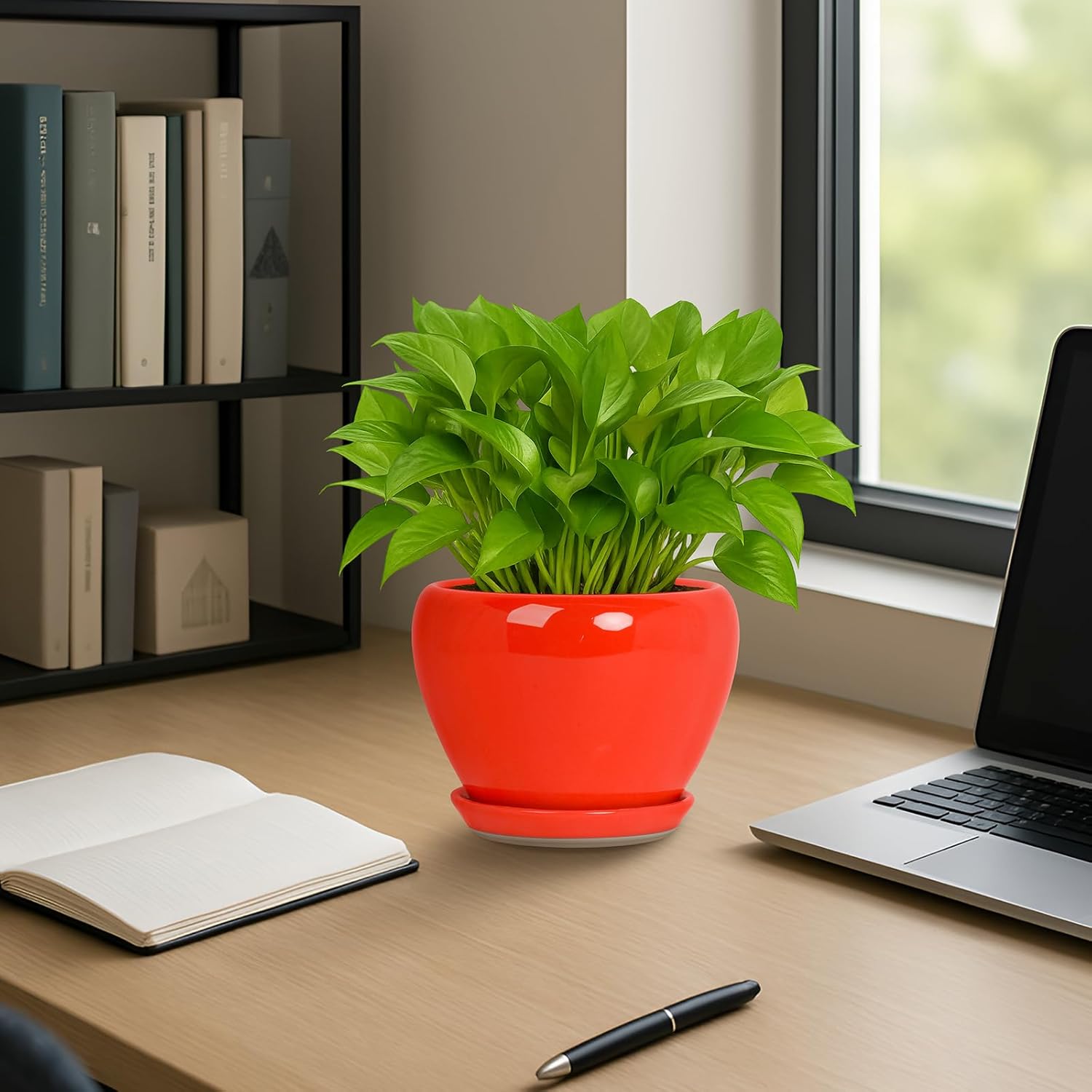 Deep Dream 6 Inch Plant Pots- Ceramic Planter Pot with Drainage Hole and Saucer, Round Flower Pot for Indoor Outdoor Succulent, Snake Plants and Cactus, Red