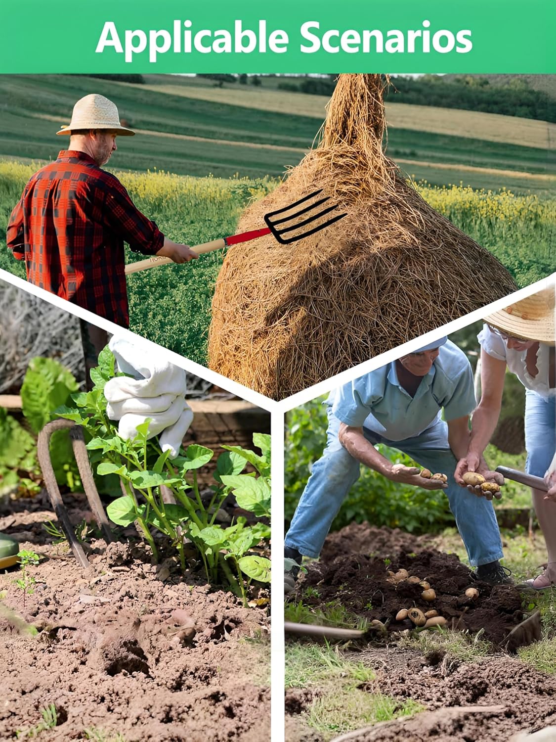 - Special Process: The pitch fork head is made of one-piece roll forging process, which is strong and durable, and can withstand heavy pressure and severe conditions of use.