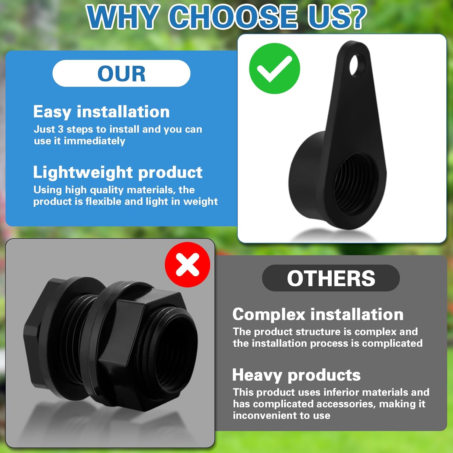 - Convenient Switch Rotation: Rain barrel spigot is easy to rotate the switch valve to open or close the Rain Barrel Spigot