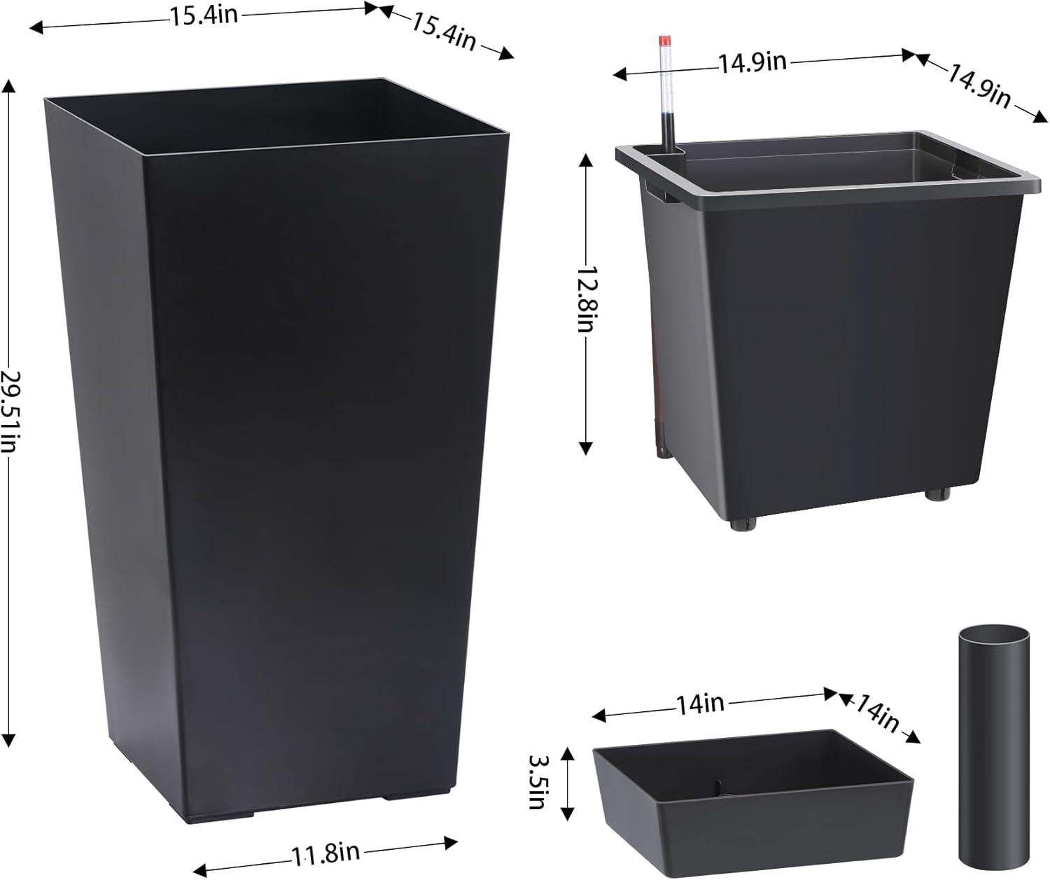 - Automic Watering System: Each tall black planters comes with built-in drainage holes and a sink to ensure that your greenery absorbs water smoothly and minimizes root rot. When the water level is low, the automatic watering system kicks in to provide your plants with the necessary moisture with minimal effort
