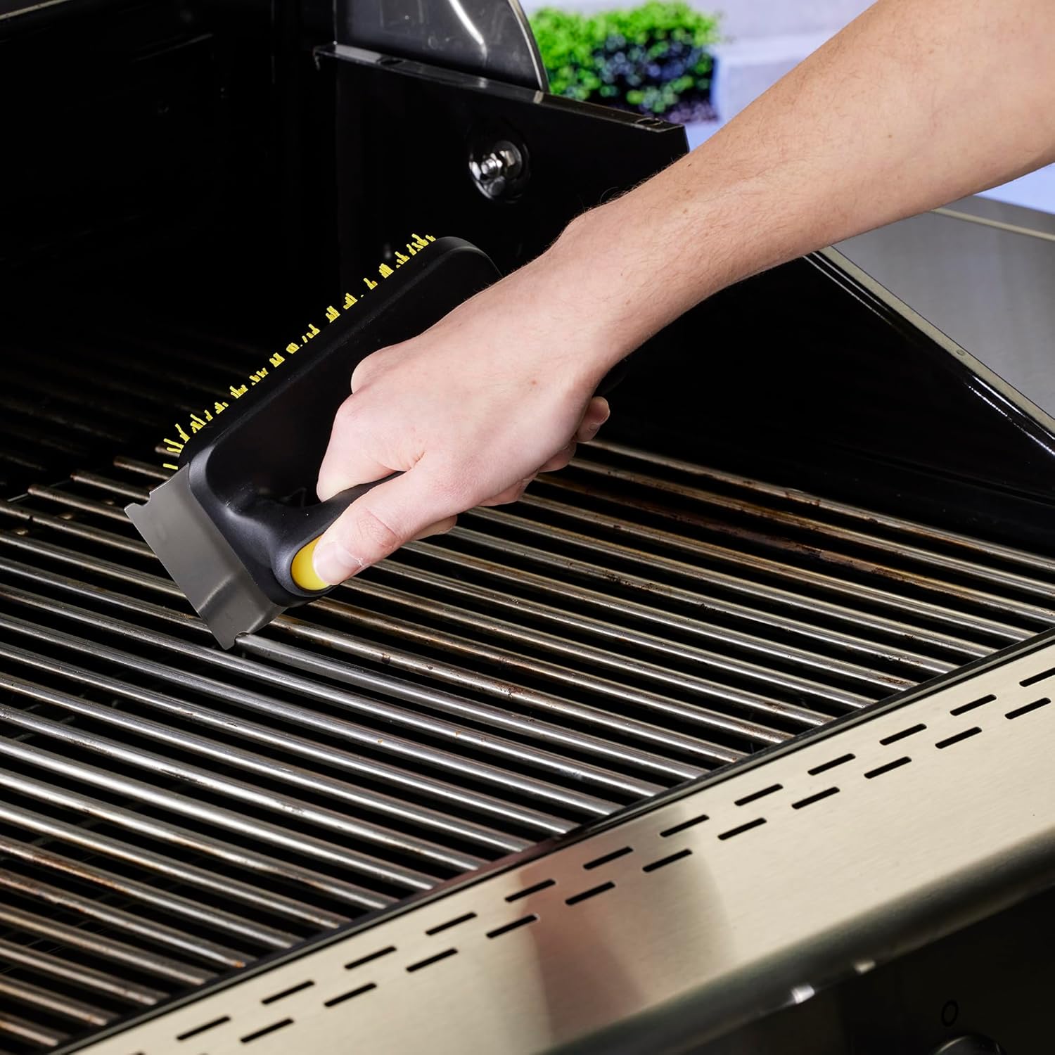 - Built-In Steel Grid Scraper for Extra Tough Spots: When the gunk won’t budge, the built-in steel grid scraper has your back. This feature is perfect for handling thick, stuck-on debris that needs a bit more elbow grease. It’s seamlessly integrated into the brush, giving you the extra cleaning power you need without switching tools.