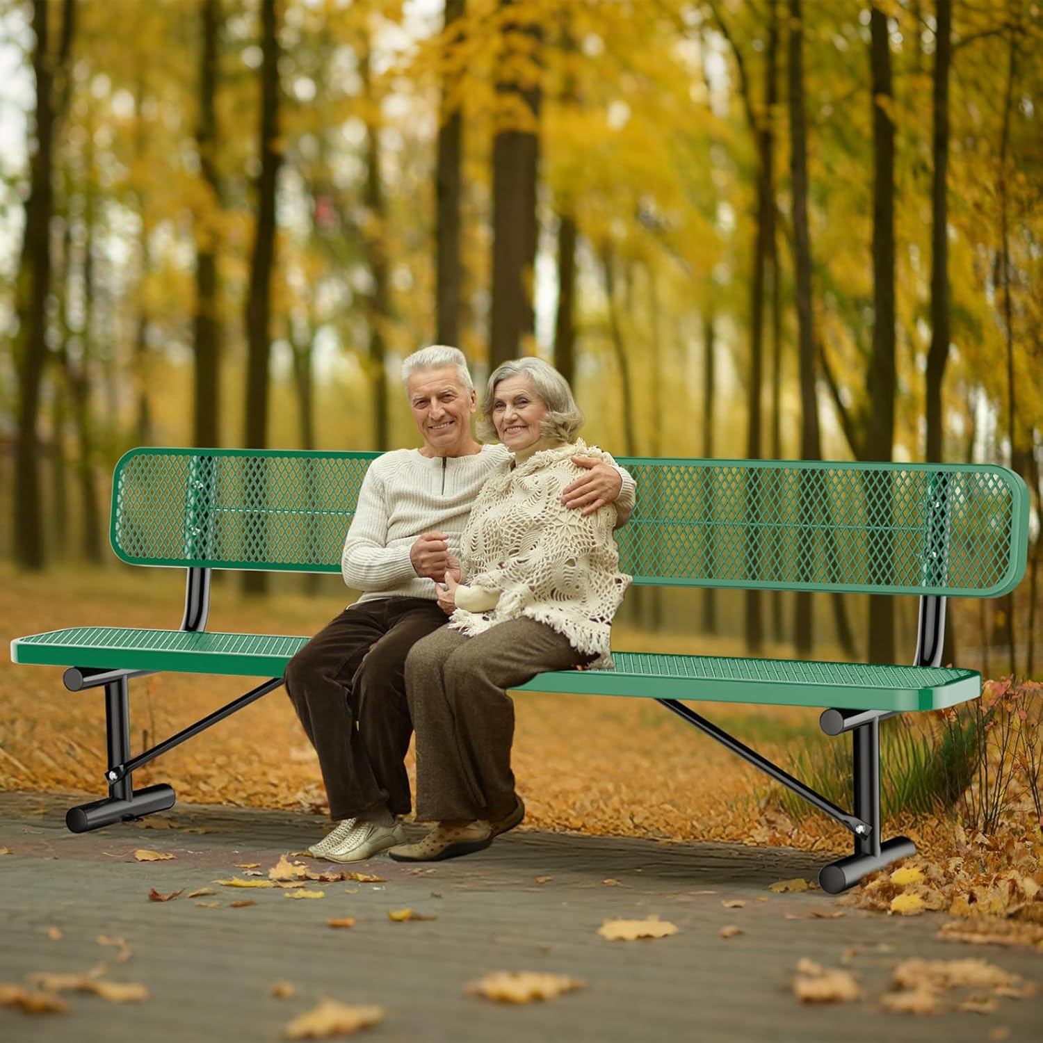 8FT Heavy Duty Park Bench with Back Portable Frame, Outdoor Metal Park Bench with Backrest, Steel Mesh Outdoor Bench for Garden, Lawn, Patio, Porch, Park, Yard, Green