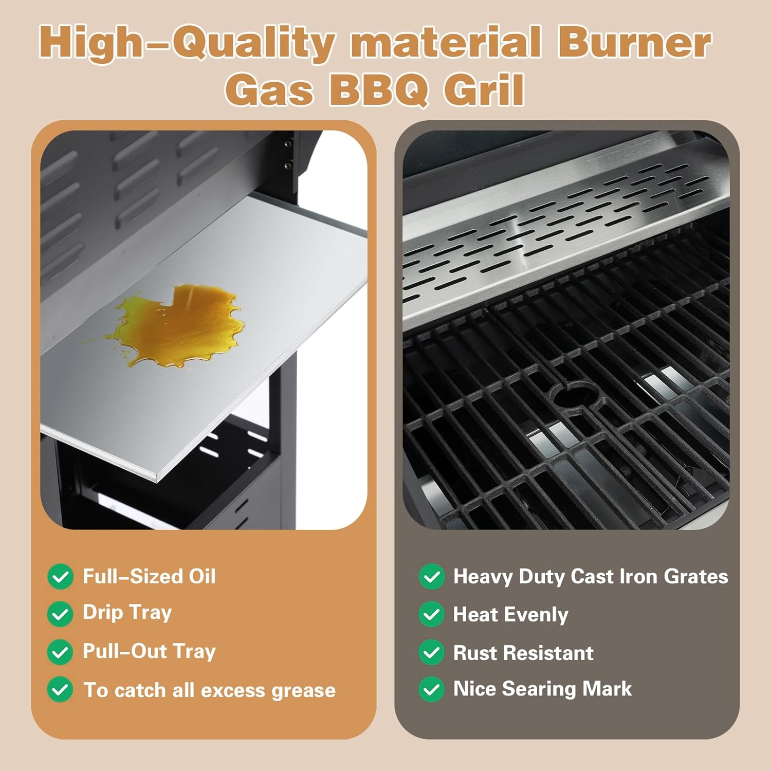 - The lid is equipped with a high-precision thermometer, so you can accurately monitor the internal temperature without opening the lid frequently. Each burner can adjust the firepower independently, whether it is low-temperature slow roasting or high-temperature fast frying, you can easily control it to ensure that every food is cooked just right.
