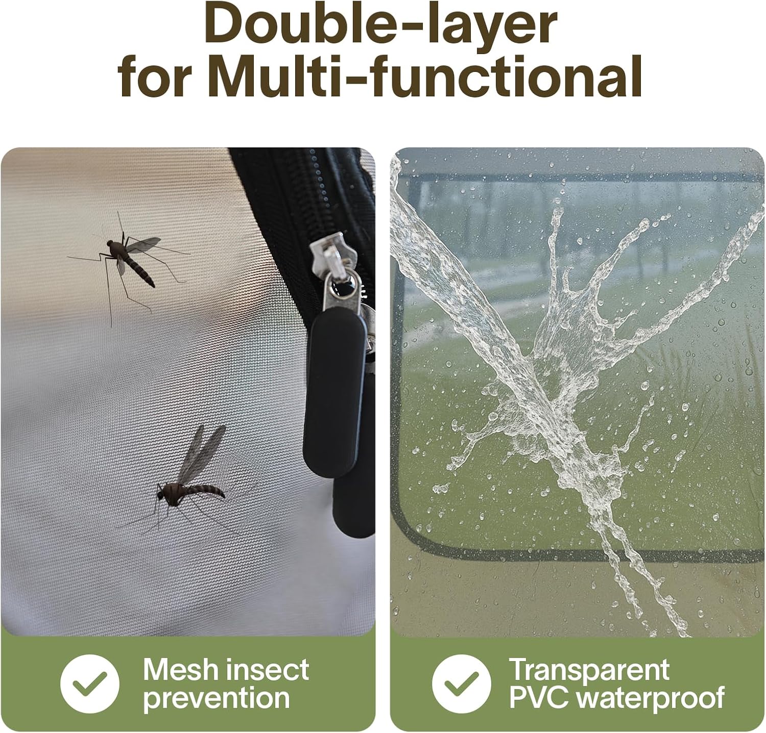 - All-Weather Ready: Built for all four seasons, this pop up tent shields you from rain, wind, and insects. Use the mosquito-proof mesh for breezy backyard lounging or rely on the waterproof PVC layer for storm protection—versatility meets durability.