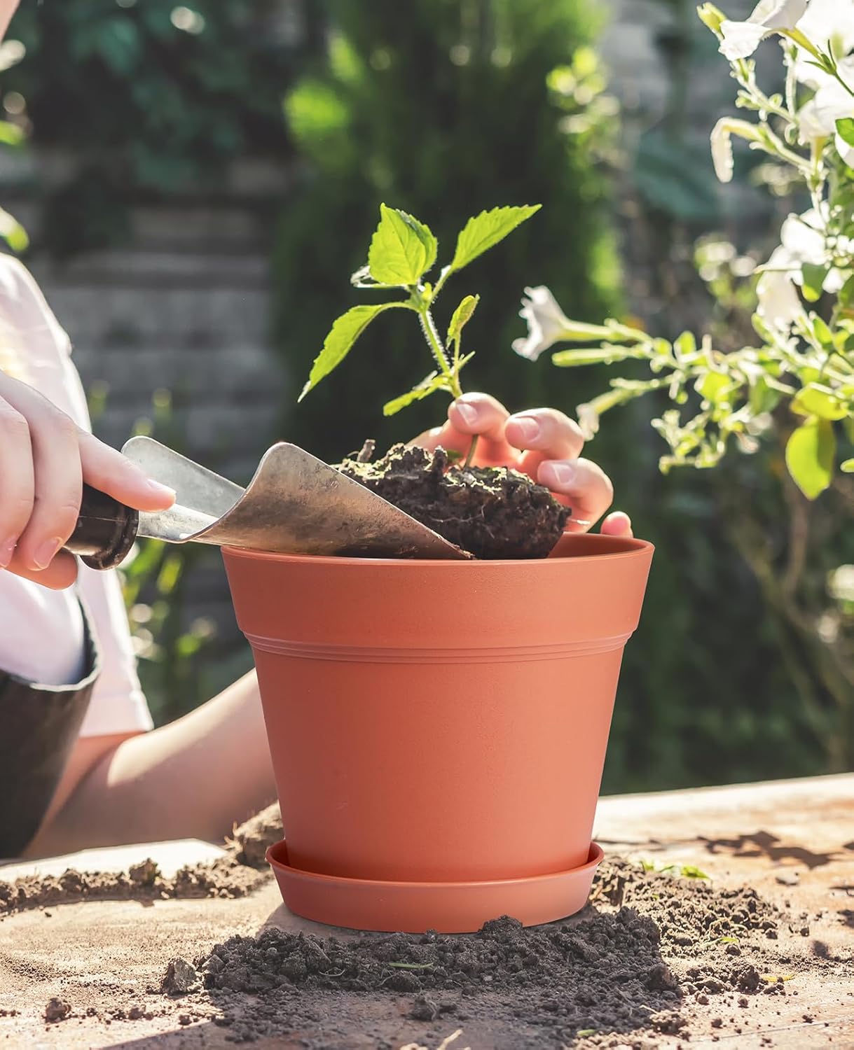 homenote Plant Pots,7.5 Inch Flower Pots for Plants Plastic Planters for Indoor with Multiple Drainage Holes and Trays, for All Home Garden Flowers Succulents,Outdoor(Terra Cotta,8 Pack)
