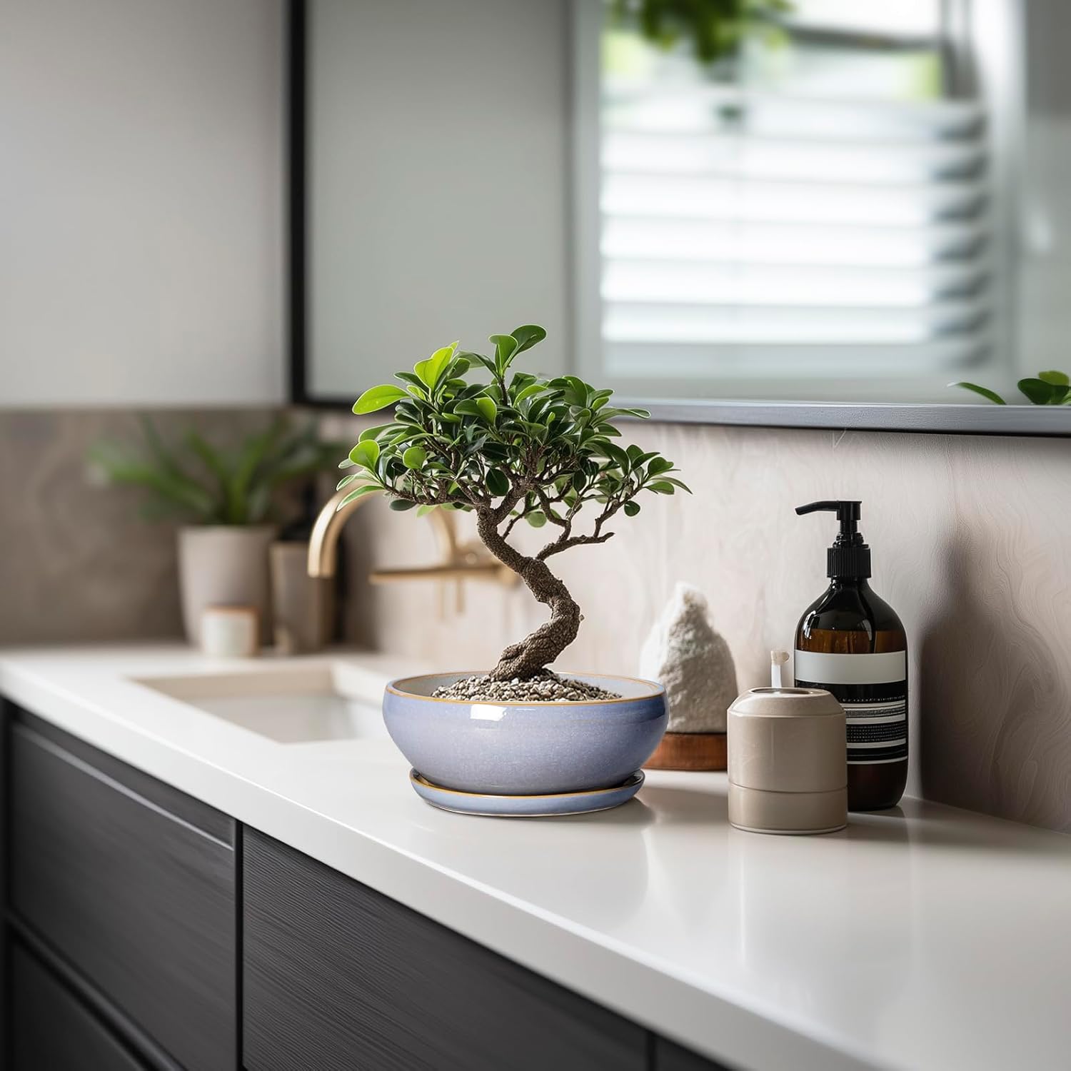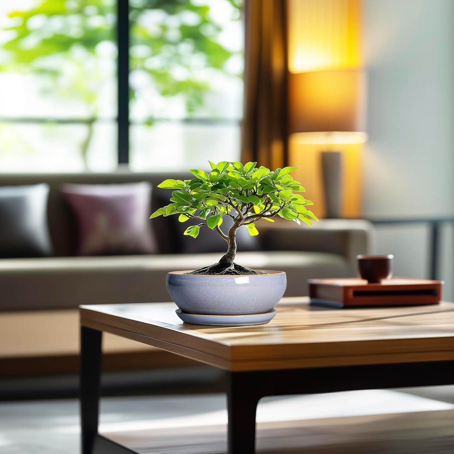 - Plant Pots with Drainage Hole and Ceramic Saucer: The bottom of the bonsai pots has drainage hole and a matching ceramic plant saucer to collect excess drainage and soil overflow, keeping plant root cared and your indoor tidy
