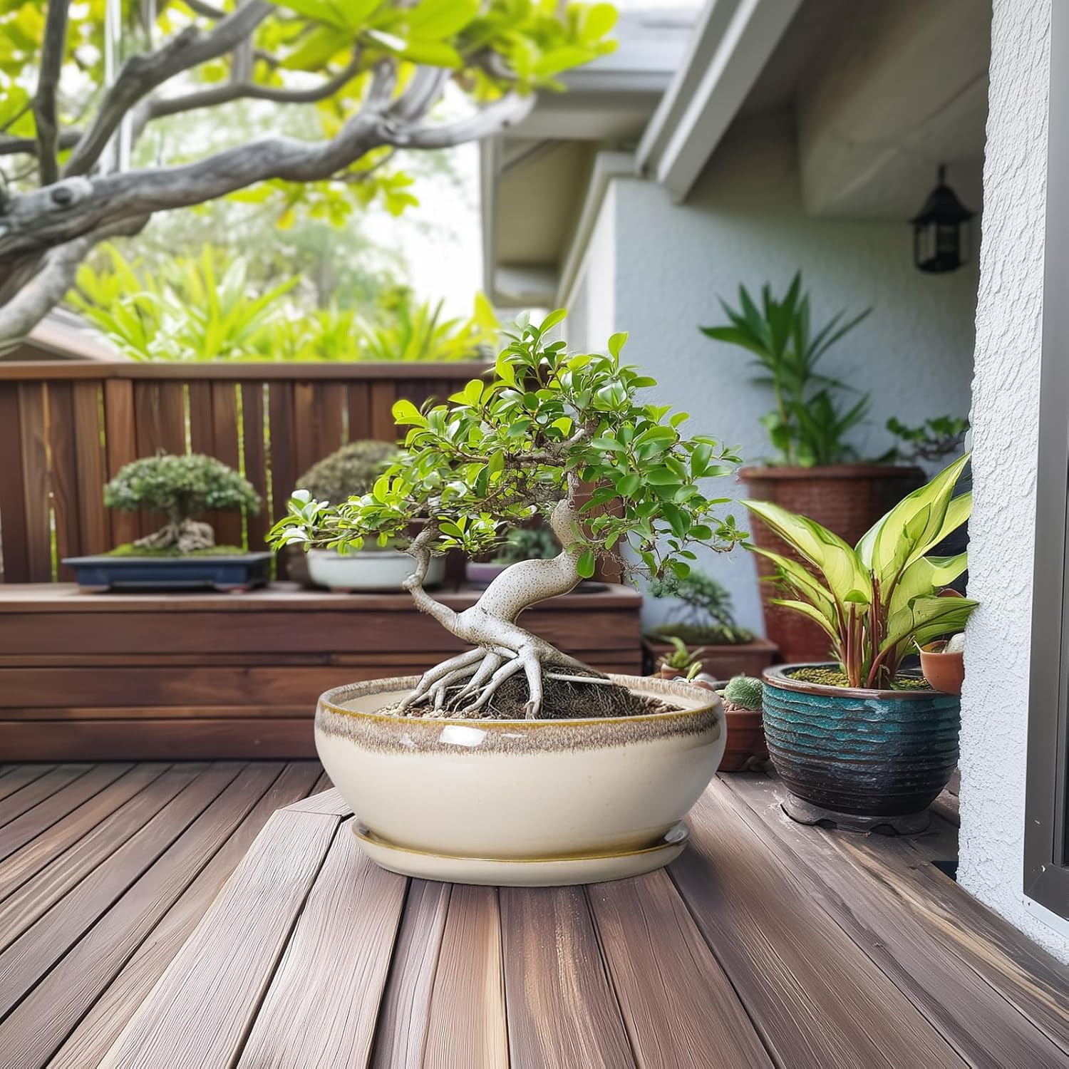 - Plant Pots with Drainage Hole and Ceramic Saucer: The bottom of the bonsai tree pots has drainage hole and a matching ceramic plant saucer to collect excess drainage and soil overflow, keeping plant root cared and your indoor tidy
