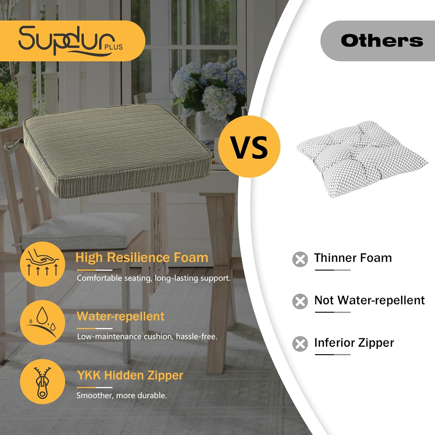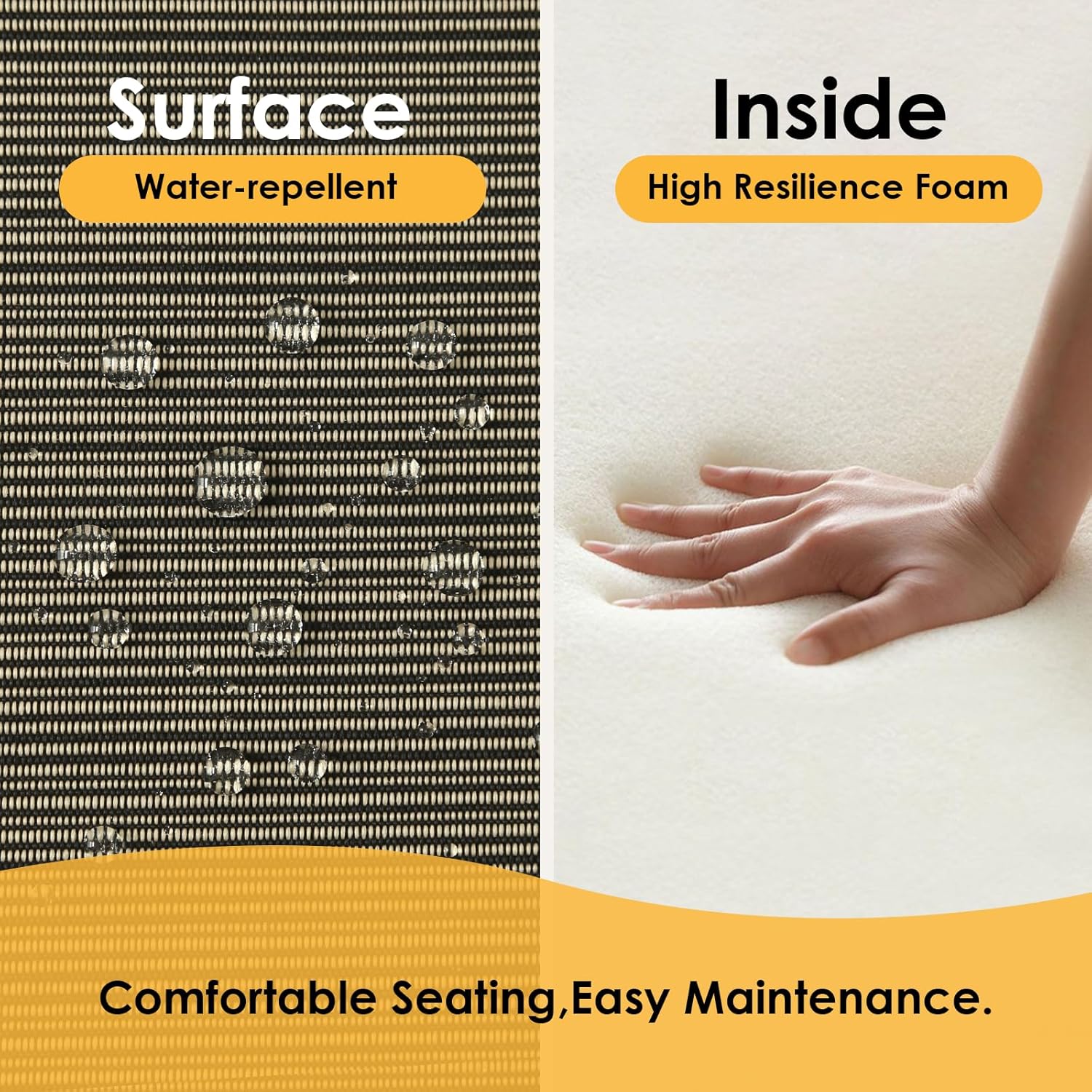- High-density Foam: Made with thick, high-resilience foam that bounces back quickly after use, providing soft support and lasting comfort.Perfect for long hours of sitting while enjoying the outdoors.