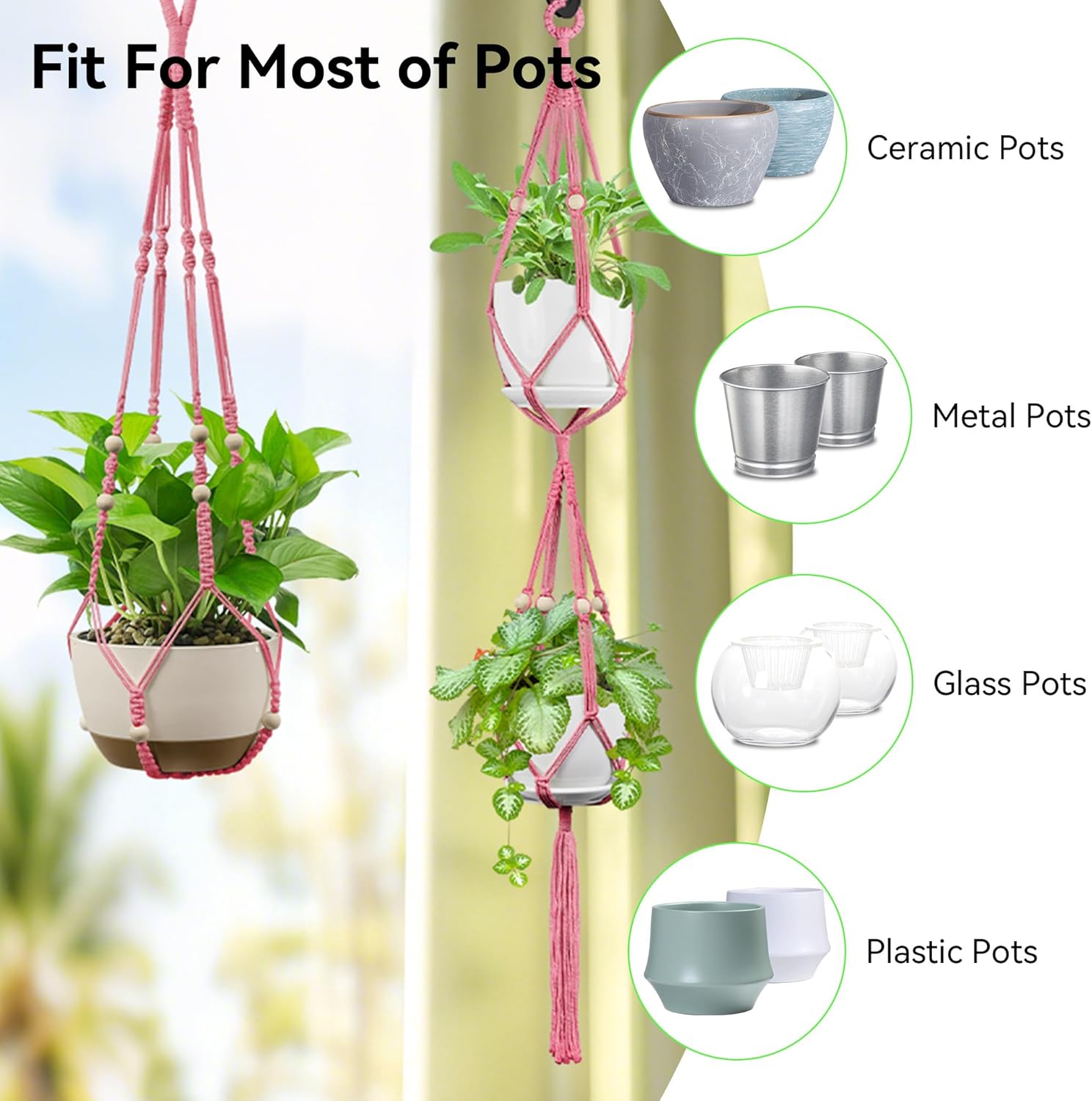 - Easy Installation & Versatile Use: Effortlessly hang this stylish macrame plant hanger in your living room, bedroom, kitchen, or balcony; The easy-to-install design allows you to quickly hang the planter from any ceiling hook or wall bracket