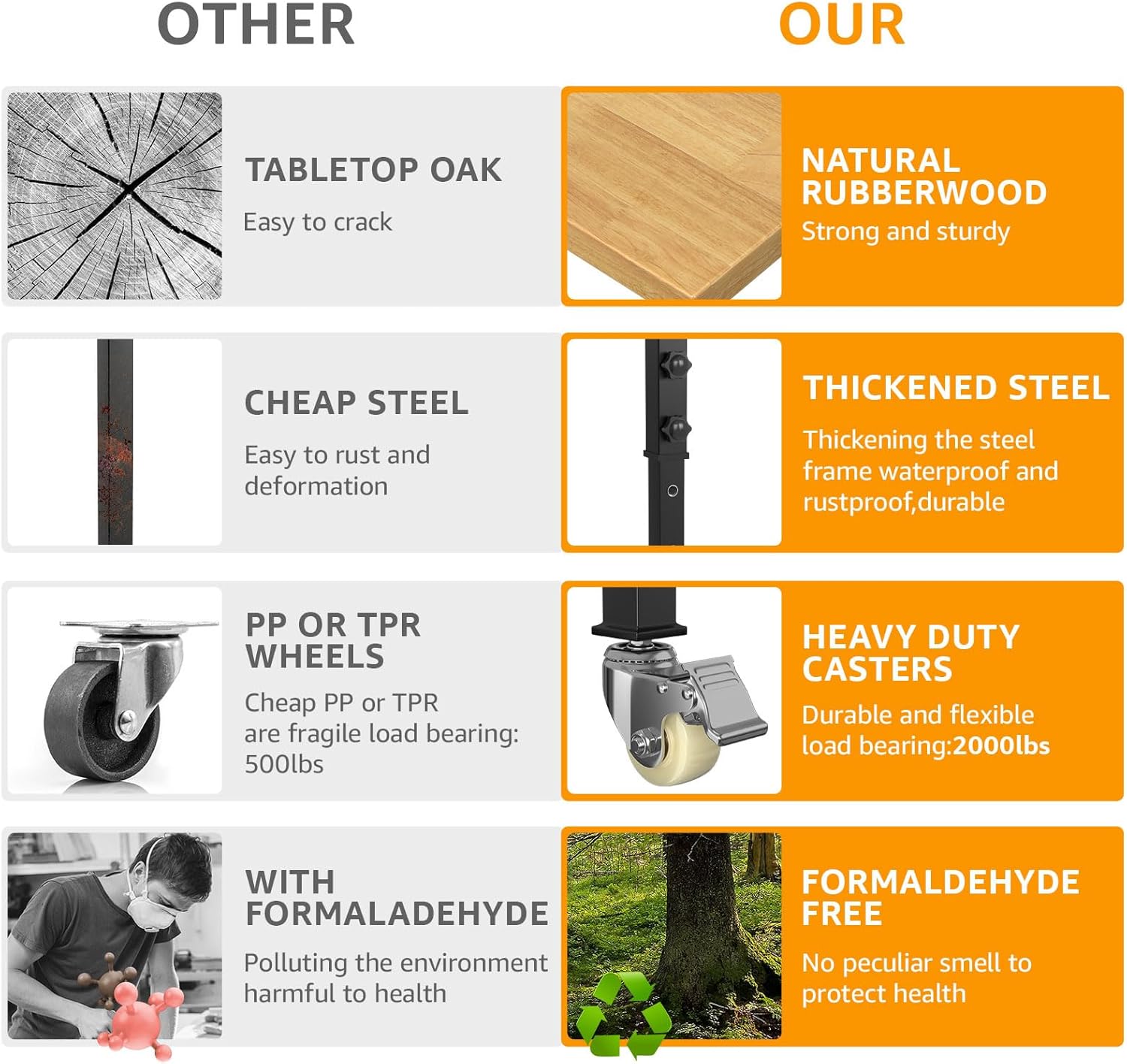 60" Adjustable Workbench,Heavy-Duty Work Table,3000 LBS Load Capacity Hardwood Workstation Outlets with Power Strips and Wheels,for Workshop, Garage