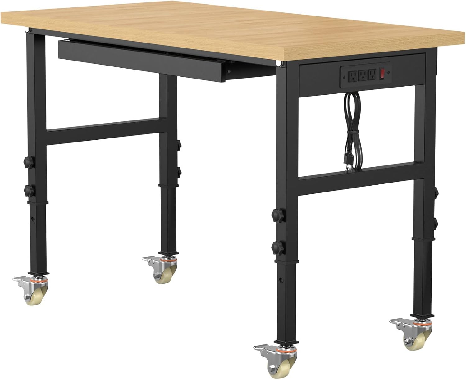 - Power Outlets:Our workbench comes with a built-in power strip, includes a 6.56 ft cable, 3 AC outlets, making it convenient to use various power tools and lighting.Eliminating the hassle of searching for available outlets.Similarly, our work table is equipped with drawers to facilitate your storage of various items