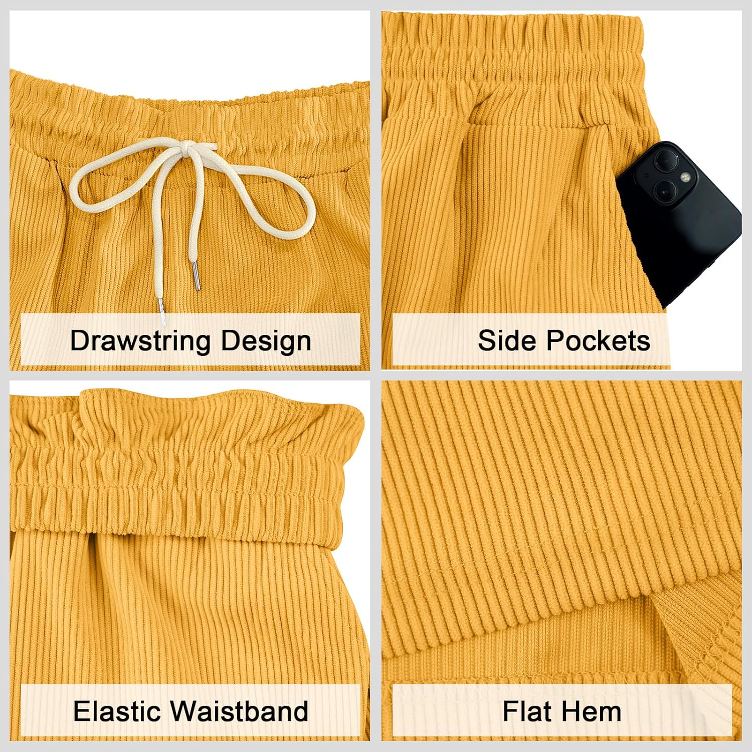 Mens Cargo Shorts Casual Drawstring Elastic Waist Corduroy Summer Beach Shorts with Pockets