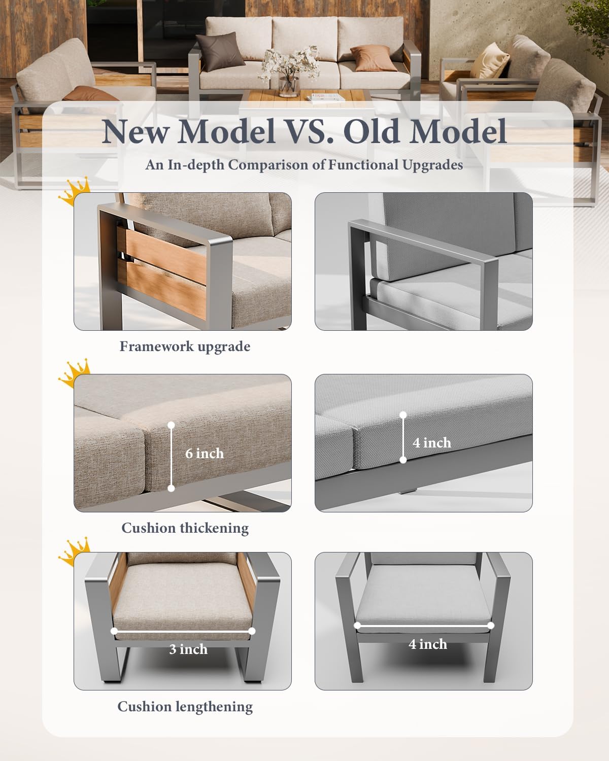- ⛱️【Spacious Seating & Superior Weight Capacity】our outdoor sofa offers larger dimensions and correct height to stand up from easily. Solidly constructed, Armchair holds 400 lbs, coffee table holds 250 lbs. These chairs can be used safely and reliably by people of all shapes and sizes, whether you're enjoying your time alone or sharing it with friends and family without any stress.