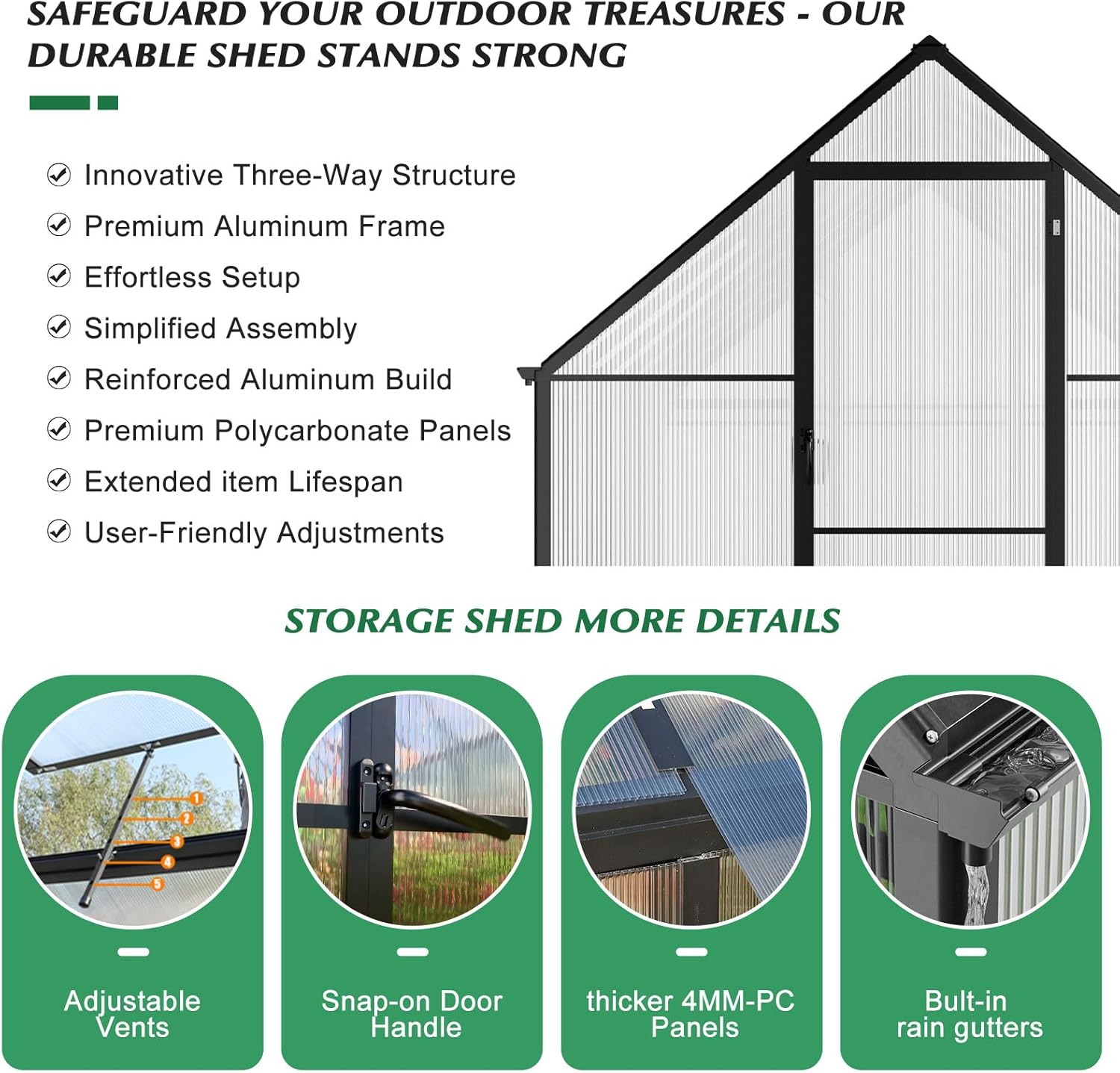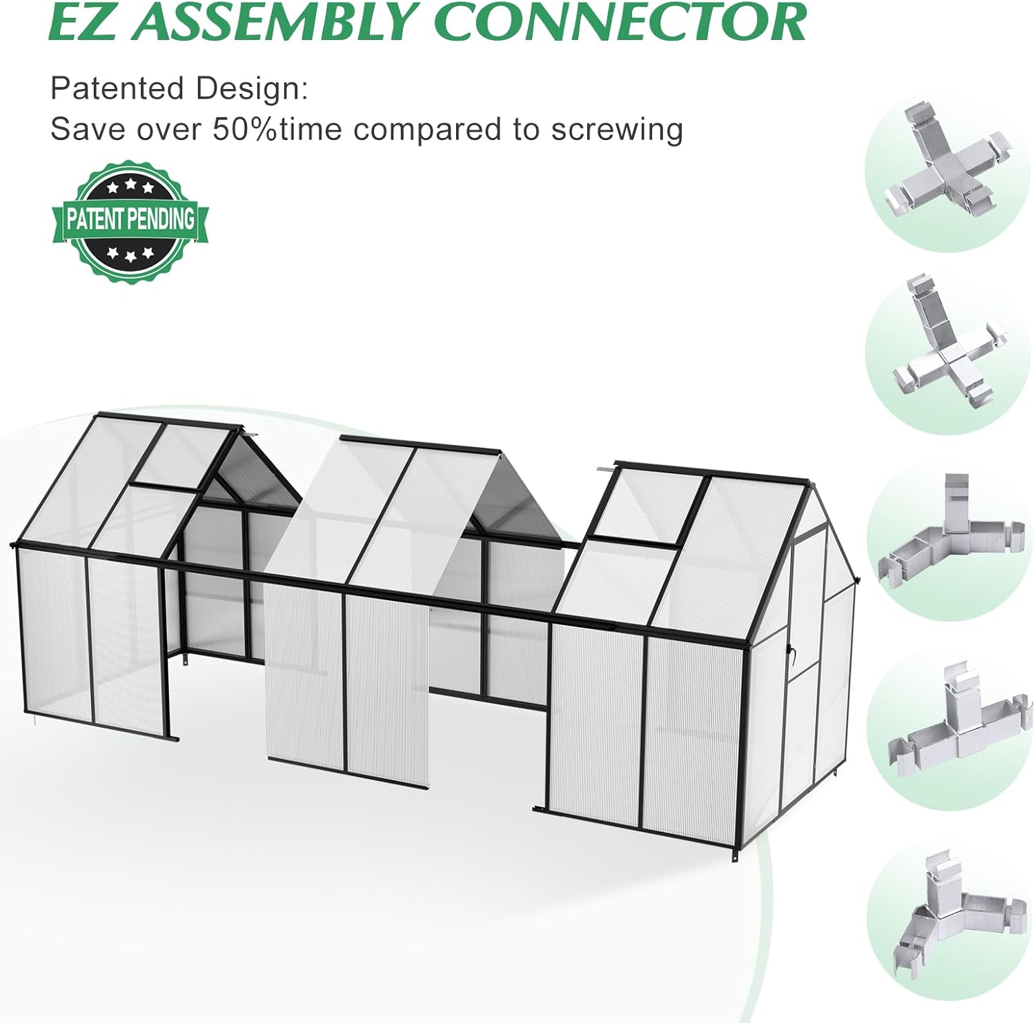 - Professional-Grade Polycarbonate: 4mm 800G multi-wall panels block 99% sunlight while maintaining 90% light transmission - 3X more durable than standard PVC greenhouses