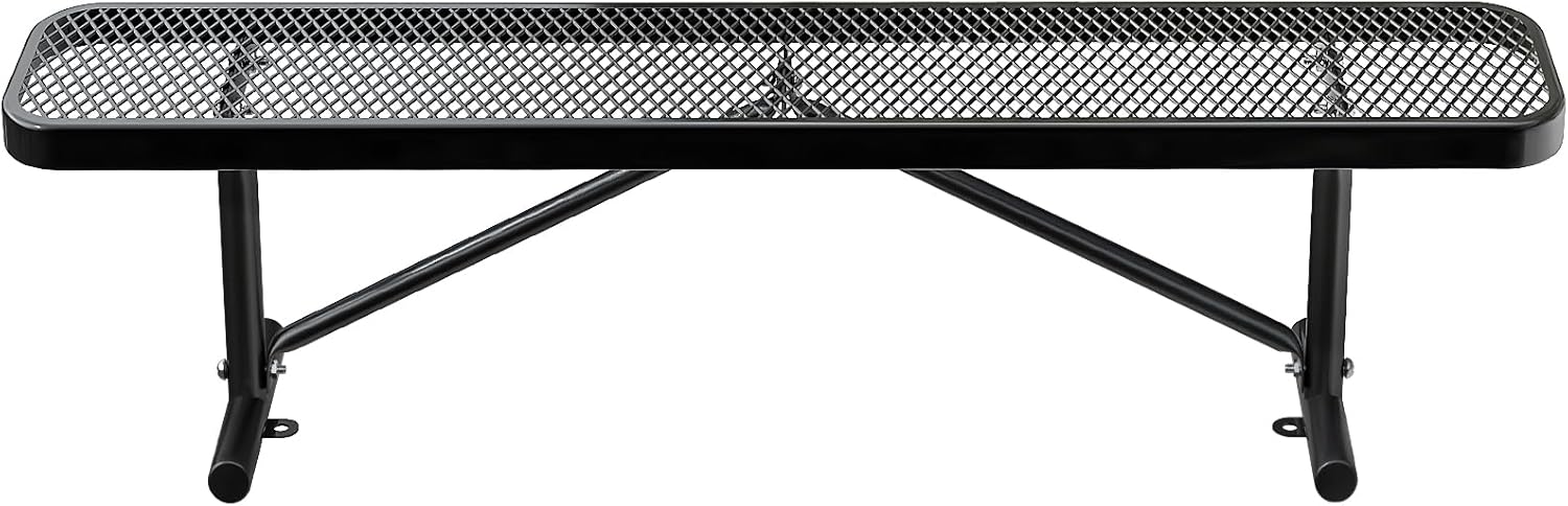 Thermoplastic Coated Iron Park Bench for Outside, Heavy Duty Metal Garden Bench, Expanded Commercial Grade Seating for Shopping Malls, Lawn Yard Porch Entryway (Black without Backrest, 72IN)