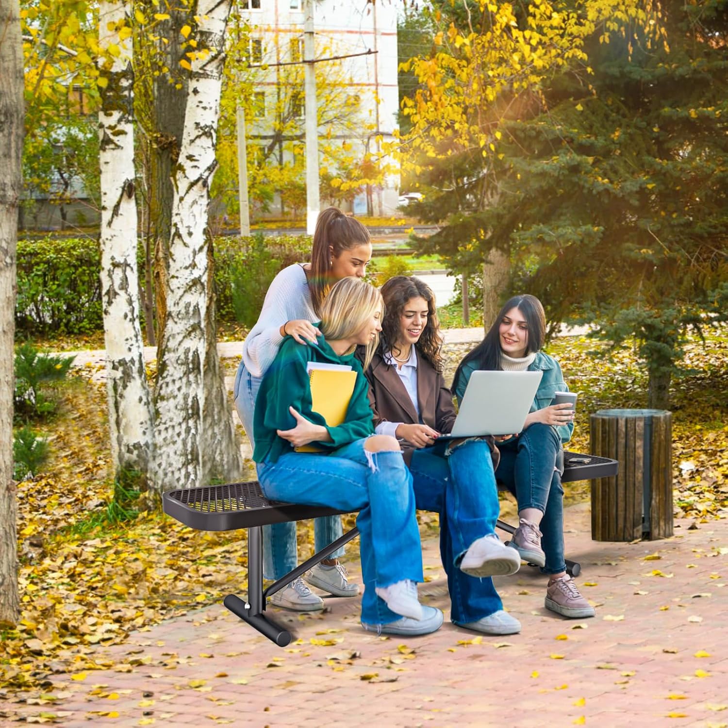 - 【Innovative Mesh Design】 The bench's unique mesh structure ensures optimal airflow, facilitating rapid drying after wet weather and providing enhanced comfort for extended sitting.