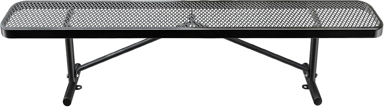 Thermoplastic Coated Iron Park Bench for Outside, Heavy Duty Metal Garden Bench, Expanded Commercial Grade Seating for Shopping Malls, Lawn Yard Porch Entryway (Black without Backrest, 96IN)