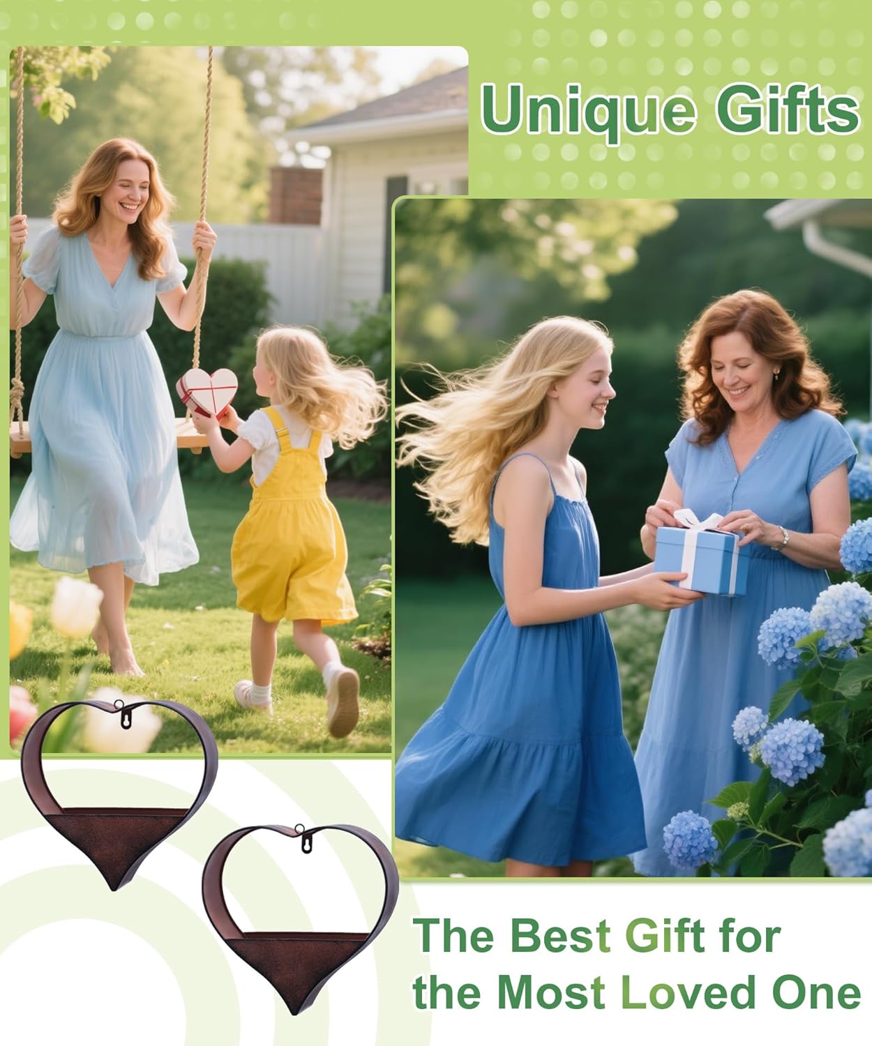 Metal Plant Hangers Indoor and Outdoor: Birthday Gifts for Women Mom Wife Father Garden Lovers - Rustic Heart Shape Hanging Planters Perfect for Window Wall Living Room Office Decor(2 Pack)
