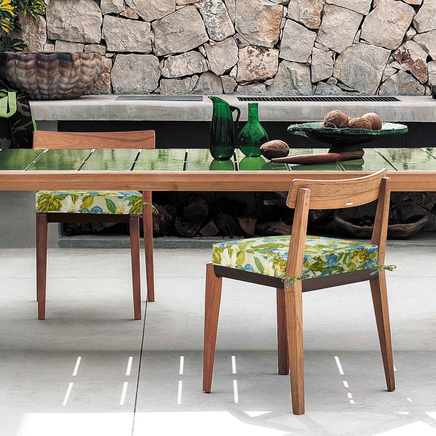 Square Corner Seat Cushions, 19" x 19" x 3", Set of 4, Indoor Outdoor Water Repellent Universal Chair Pads with Ties for Patio Furniture, Garden Dining Chairs, Blue Flower