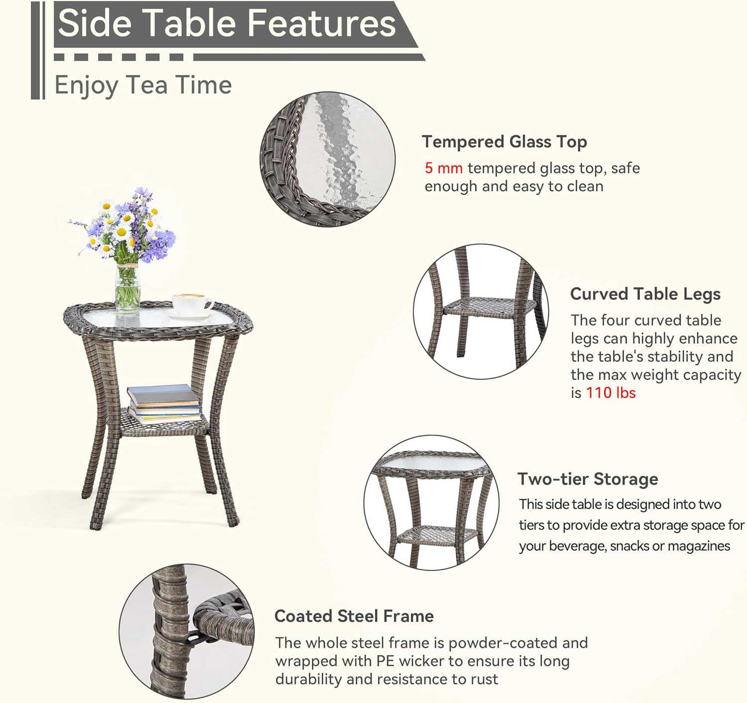 - [Specification Dimension] Patio Rocker Chair 31"Wx39.5"Dx35.5"H, Per Weight Capacity: 300 LBS. Side Table: 20"Wx20"Dx22"H. Measured manually may allow minor errors