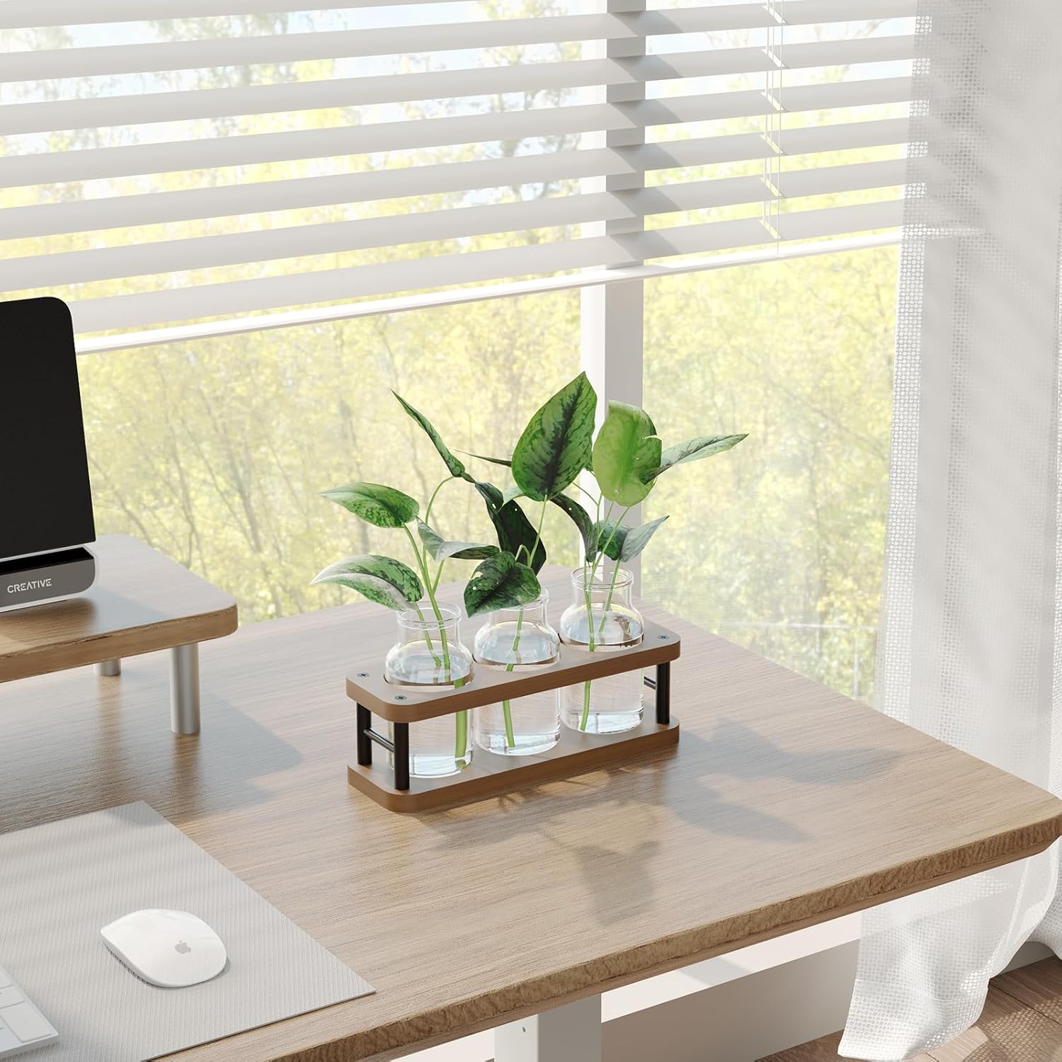 THYGIFTREE Plant Propagation Station with Wooden Stand, Propagation Vases Glass Planters for Indoor Plants Hydroponic Propagating Jars Home Office Decor, Brown