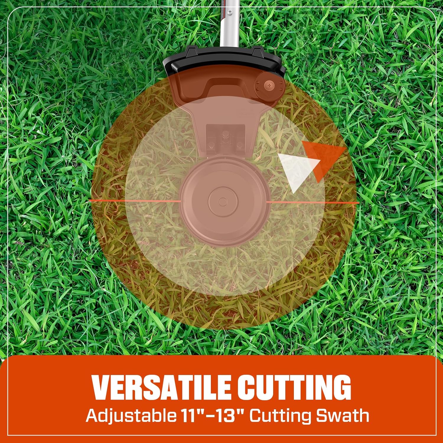 - 【Versatile Cutting & Blowing Capabilities】The trimmer offers an adjustable 11-inch or 13-inch cutting path to handle different work areas, along with a dual 0.080-inch line bump feed for tough weeds. The blower includes a concentrator nozzle for focused debris removal and 3-speed settings for optimal control.
