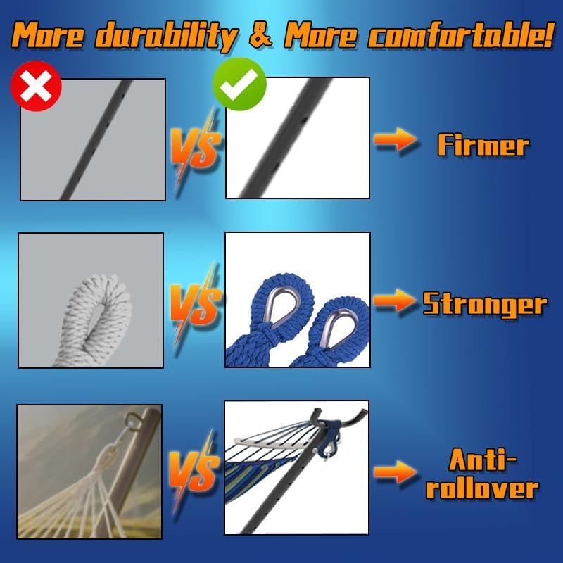 - 【Large Size & Weight-Bearing】 : ANAGOO hammock with stand adopts a reinforced design, double hammock maximum load capacity up to 500LBS, multiple people share no pressure.