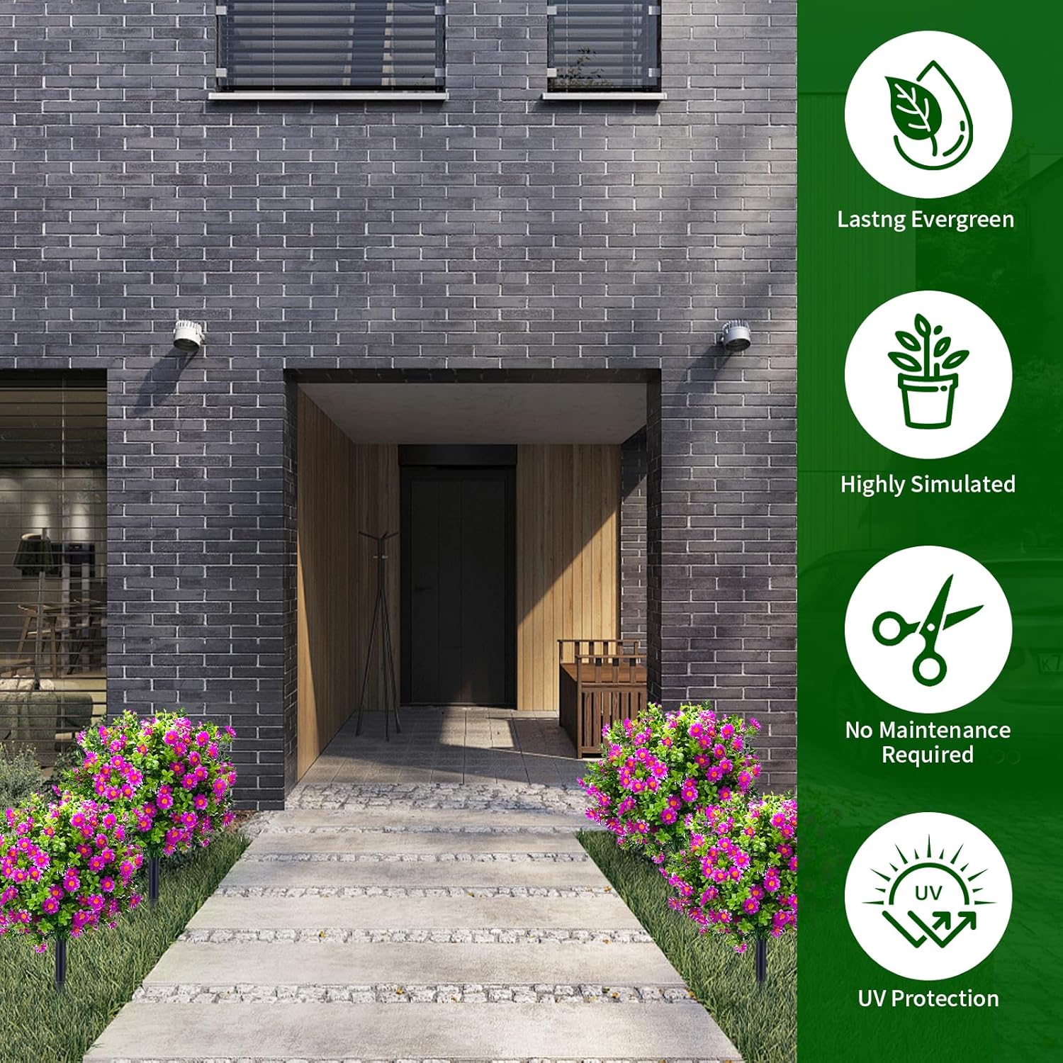 - Durable & UV Resistant – Crafted from premium silk and plastic, these faux plants are weatherproof and UV-protected, keeping their vivid colors and shape season after season, even under sun and rain.