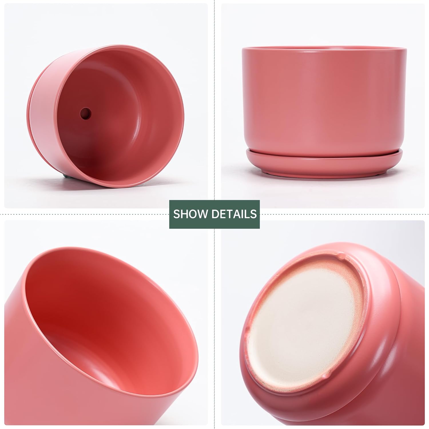 - 【High-Quality Ceramic Build】: Crafted from high-temperature fired stoneware, these ceramic planters are designed to withstand extreme conditions. The Pink Gold design enhances any indoor or outdoor space, bringing a bright, artistic vibe to your indoor planter pots and garden pots