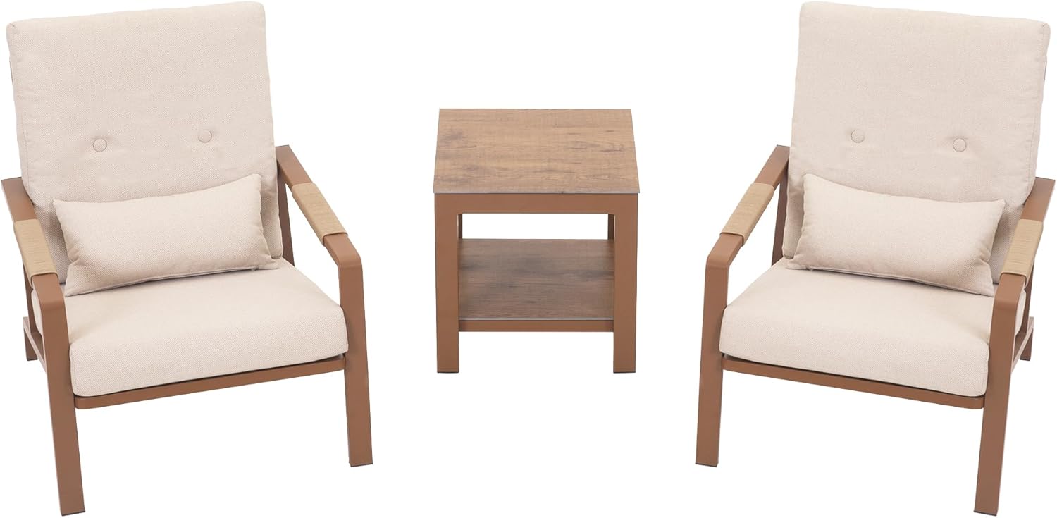 - Enhanced Comfort with Weather-Resistant Fabrics:The patio bistro set comes with 4-inch thick high-density foam cushions covered in waterproof, fade-resistant polyester. Ergonomic curved backrests offer natural lumbar support, while Velcro fasteners keep cushions in place. Ideal for gatherings or solo relaxation, it balances softness and support for all-day comfort.