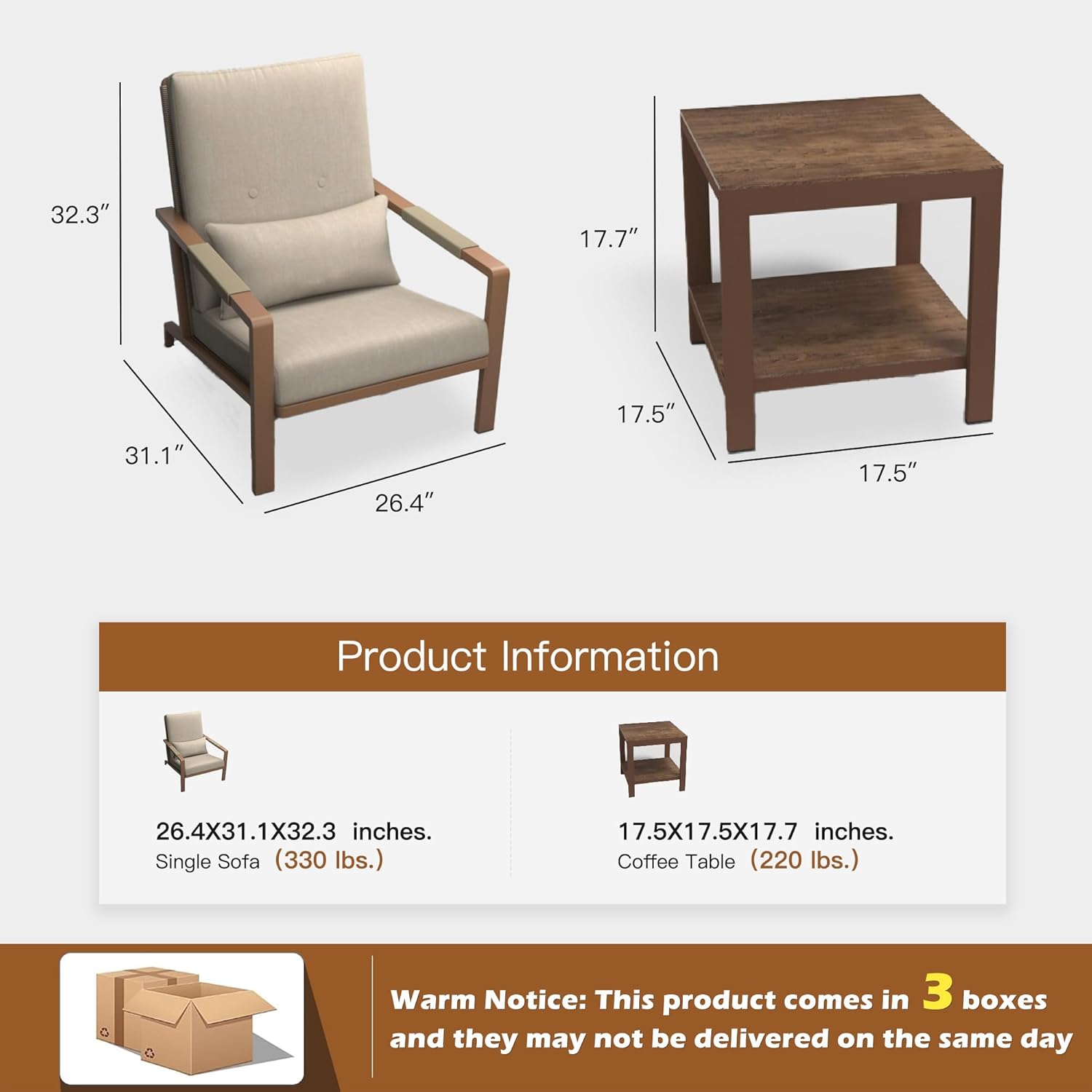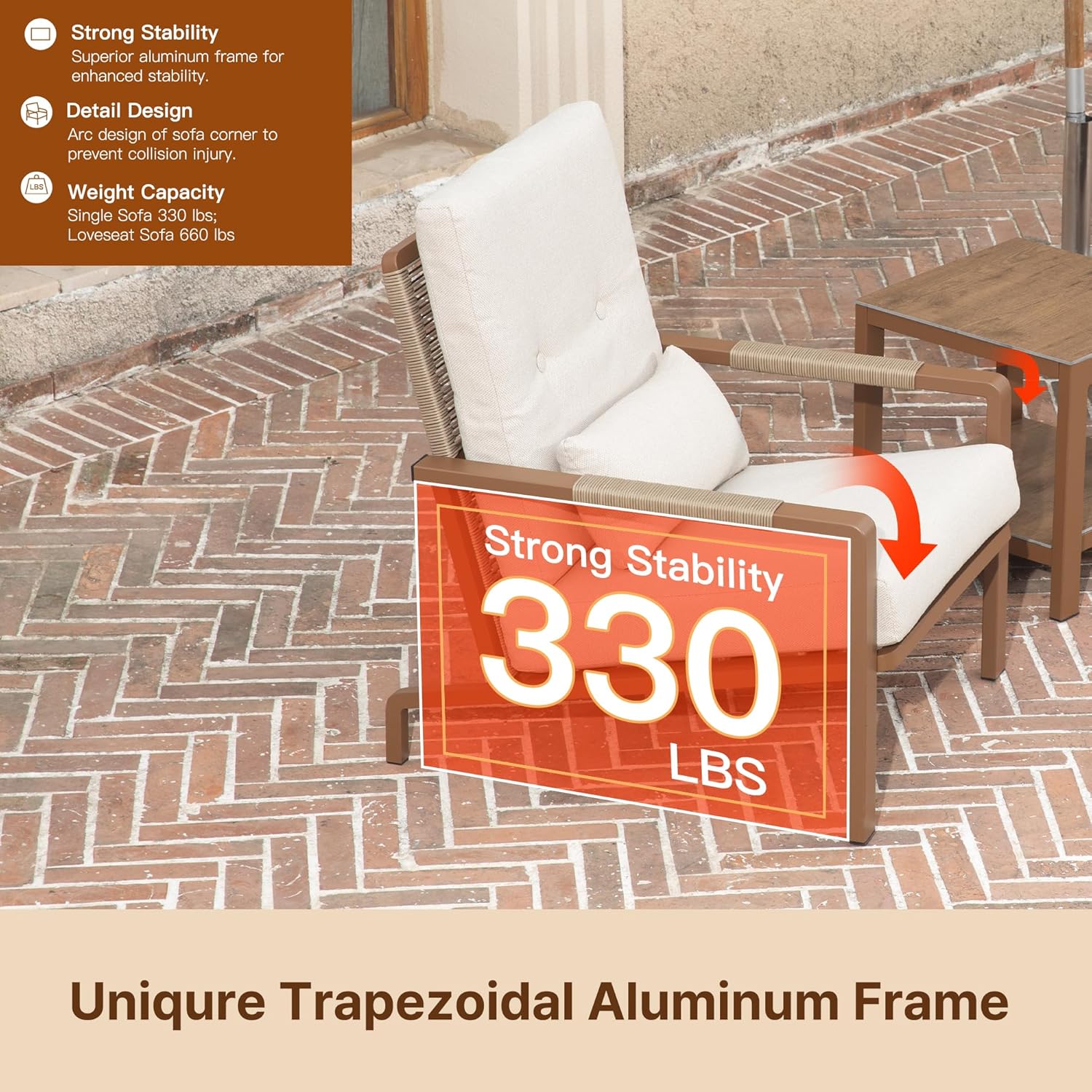 Aluminum 3-Piece Sofa Set with Coffee Table, Waterproof Fabric Cushions, Easy Assembly, High-Density Foam, Comfortable Outdoor Patio Furniture Set with Cushions (Beige)