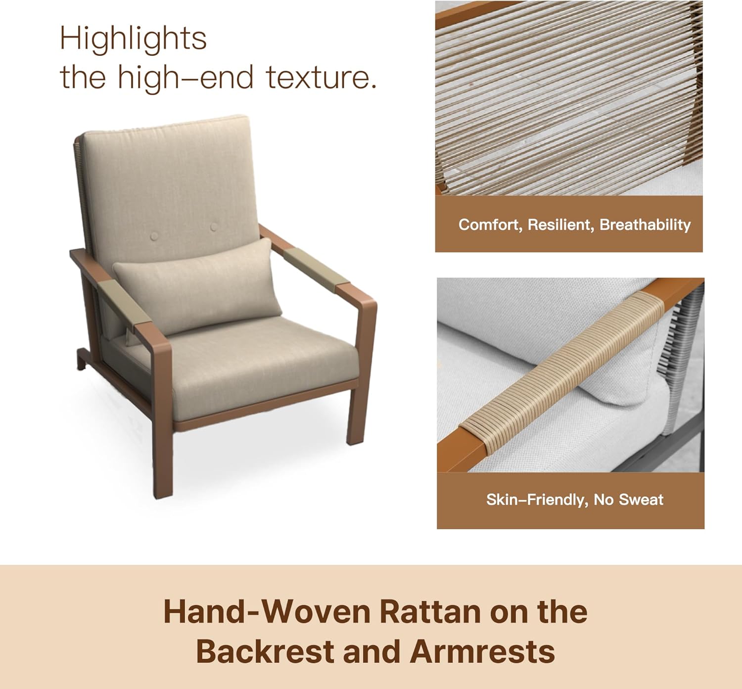 - Premium Durable Materials:This patio bistro set features a rust-resistant powder-coated aluminum frame and all-weather PE rattan. It withstands sun, rain, and temperature changes, ensuring year-round durability. Each chair supports 330 lbs, and the coffee table holds 220 lbs. The rattan adds breathable texture, combining strength with modern style for reliable outdoor use.